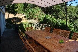 The cottage is spacious, open to the outside because it has a large wooden deck and access to the pool to share with the inhabitants of the farm.