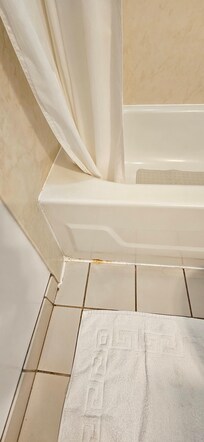 4. The window and bathroom required more thorough cleaning: there was mold and stains on the joints and corners, and the showerhead and door were quite dirty; I was able to clean part of the dirt on the door with a wet wipe, which indicates that the dirt is removable and not simply signs of normal wear.
