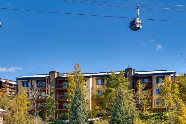 Multi-level, ski-in/out condo with mountain view, hot tub, balcony & grill