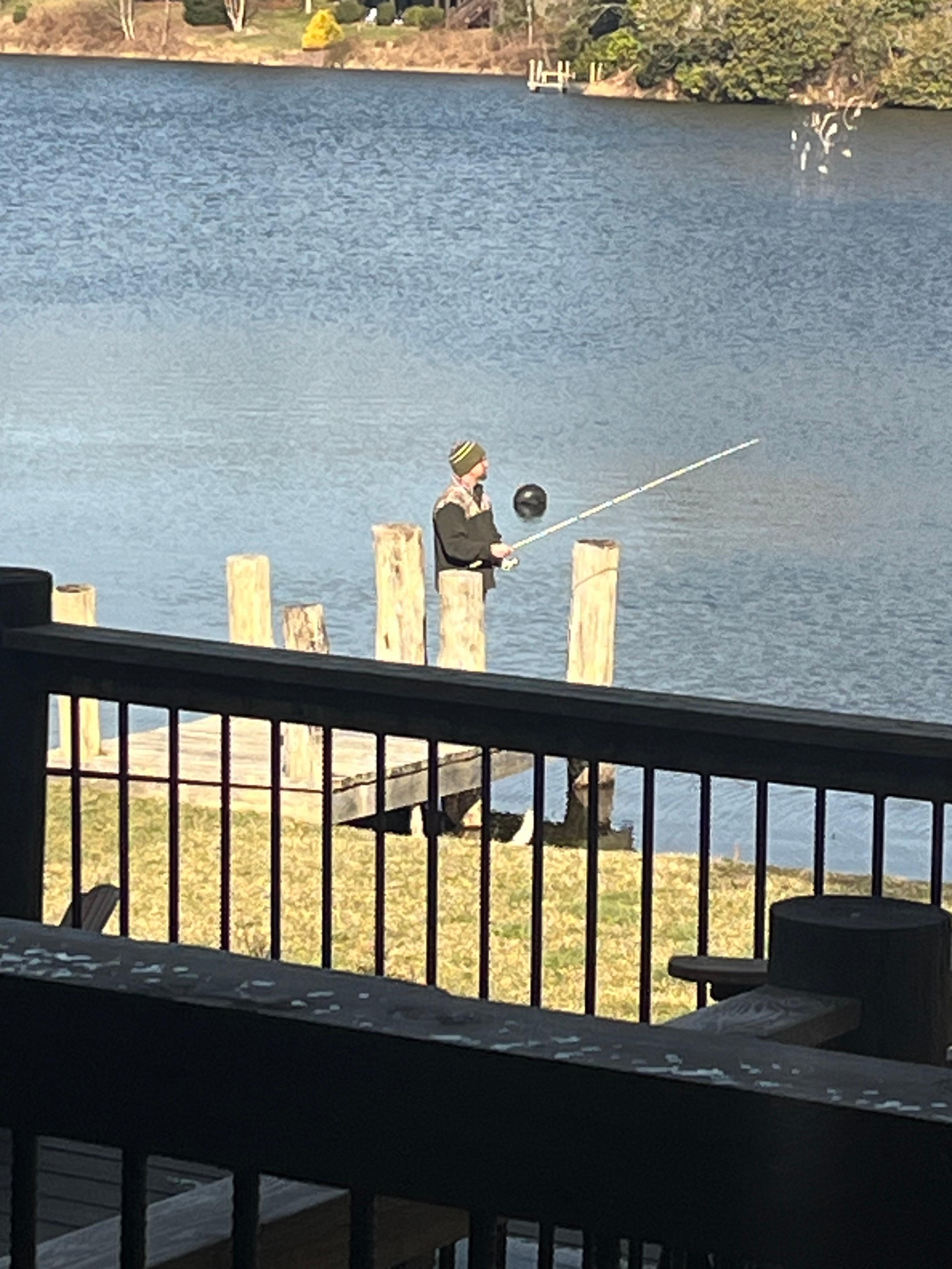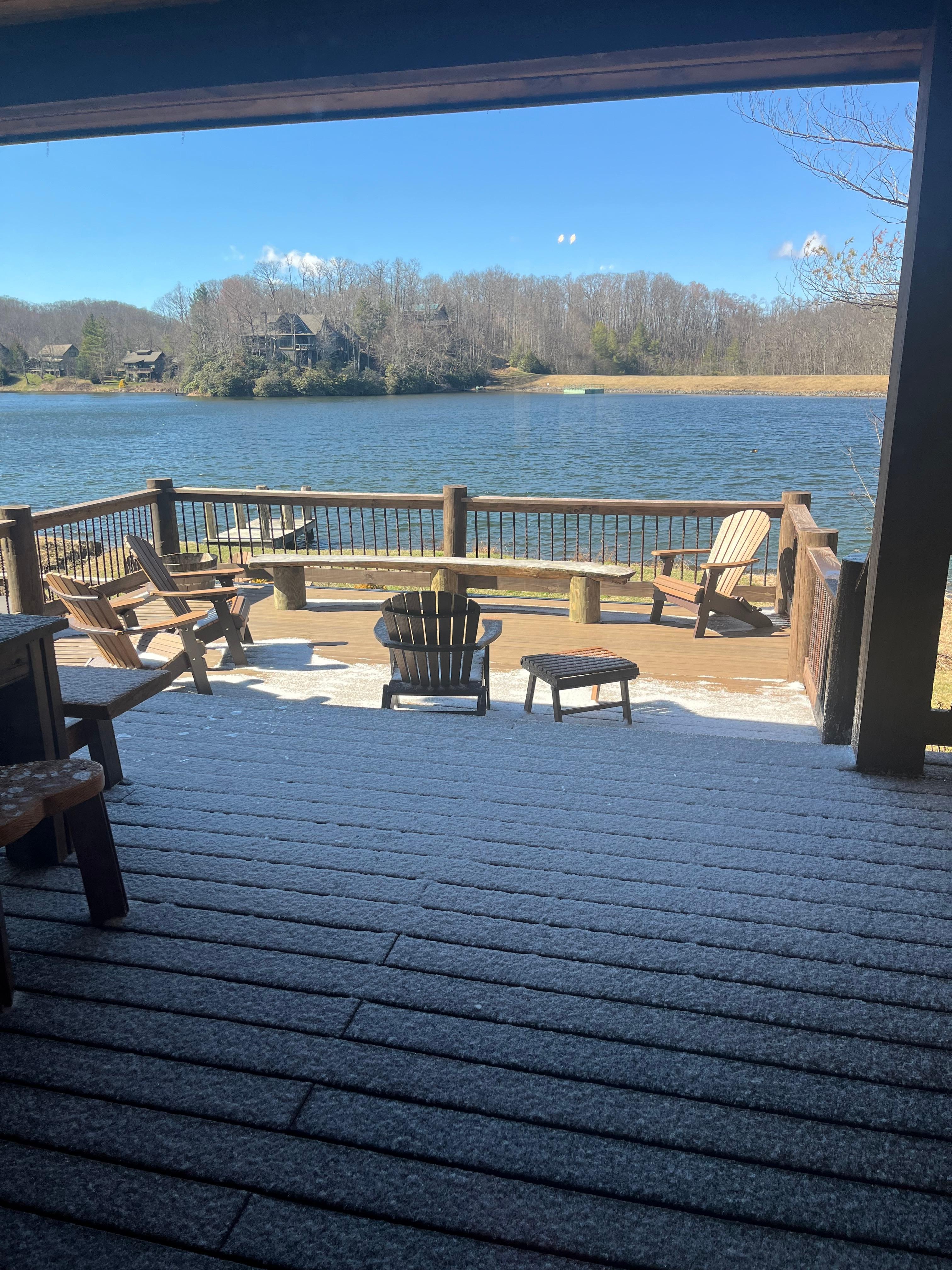 The back porch offers a lovely view of Grandfather Mountain where you can grill out or enjoy a beverage in the spacious hot tub. Roast marshmallows and share family memories around the rustic outdoor firepit. Fish or canoe off the home's private dock. Canoe is stored under the back deck.