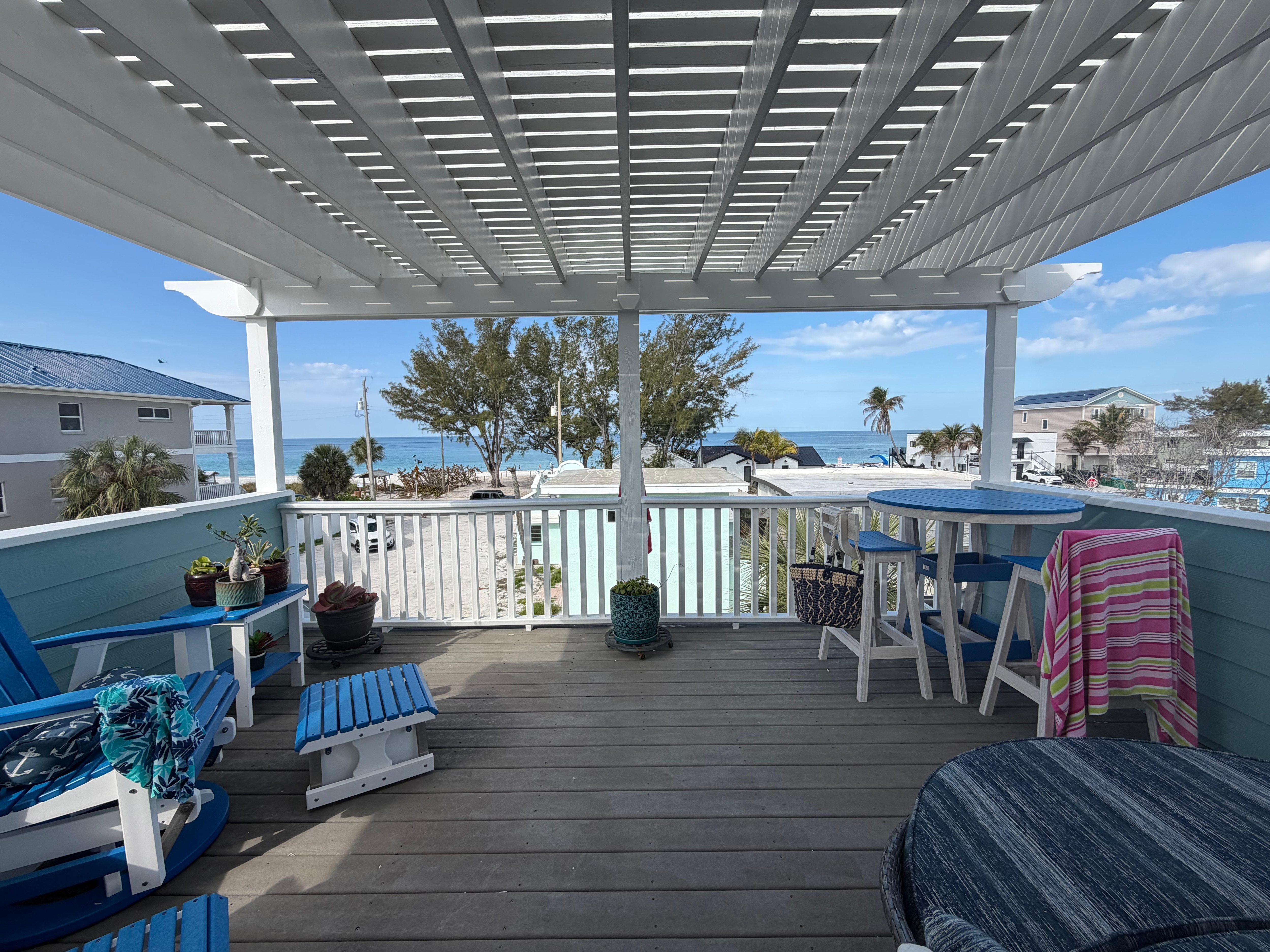 Peacefully tranquility with sunset perfection from each level. Plenty of beautiful beach atmosphere and furnishing. Everything the great cook needs even a stainless steel grill. My yard makes you feel like you are at your own private tropical resort, One guest called it Honeymoon heaven!