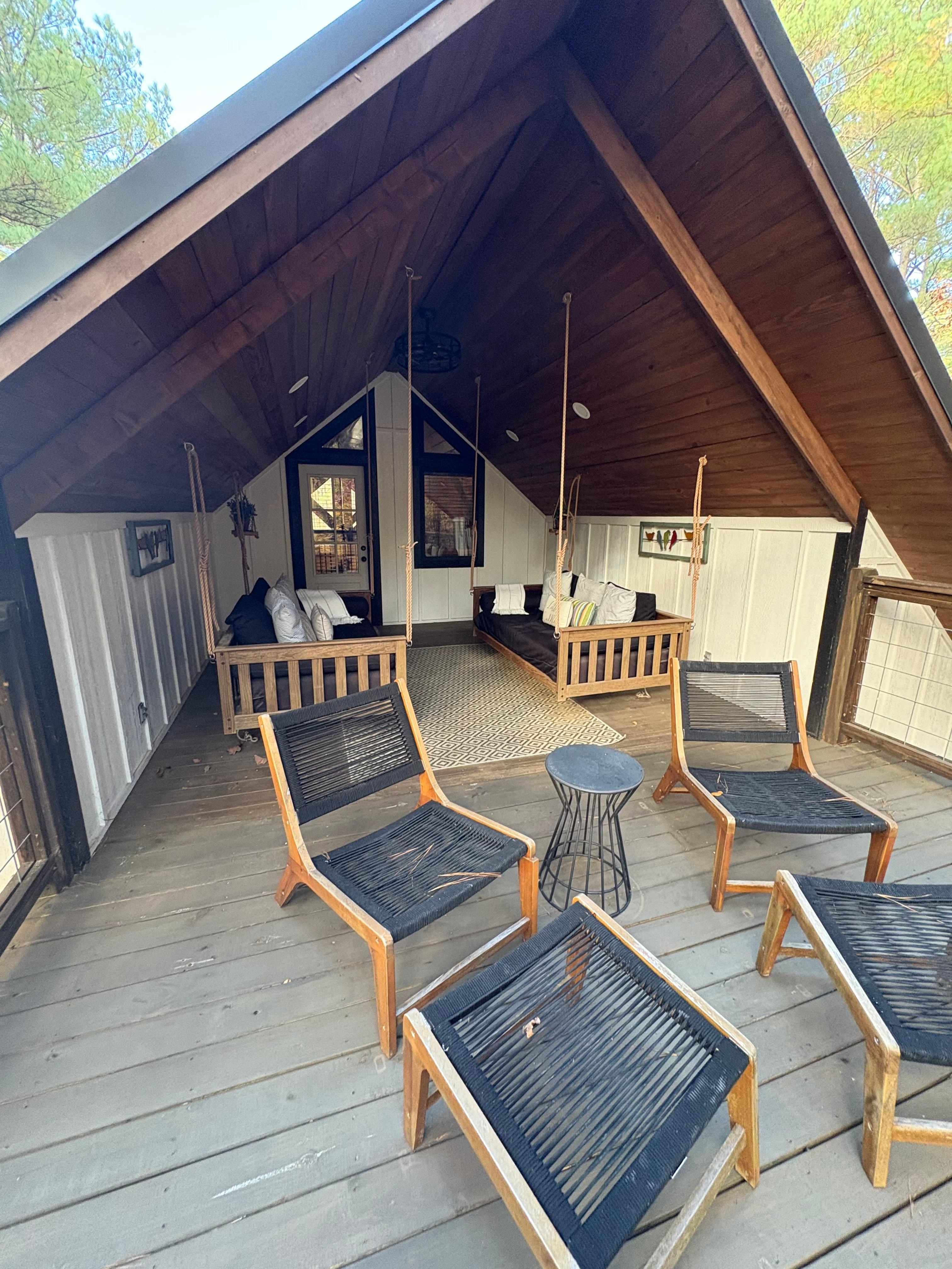 Beautiful property for relaxing as a couple or with a friend. The swinging daybeds are perfect for reading or napping; it felt like a luxury treehouse in that space. Gorgeous decor and thoughtfully appointed with all the amenities you need to enjoy your stay. The owner communicated clearly and was very responsive. The property was extremely clean and everything worked properly throughout our stay. The location is perfect - easy access to restaurants and outdoor activities in Hochatown. We will definitely return, it was the perfect place to enjoy our time off.