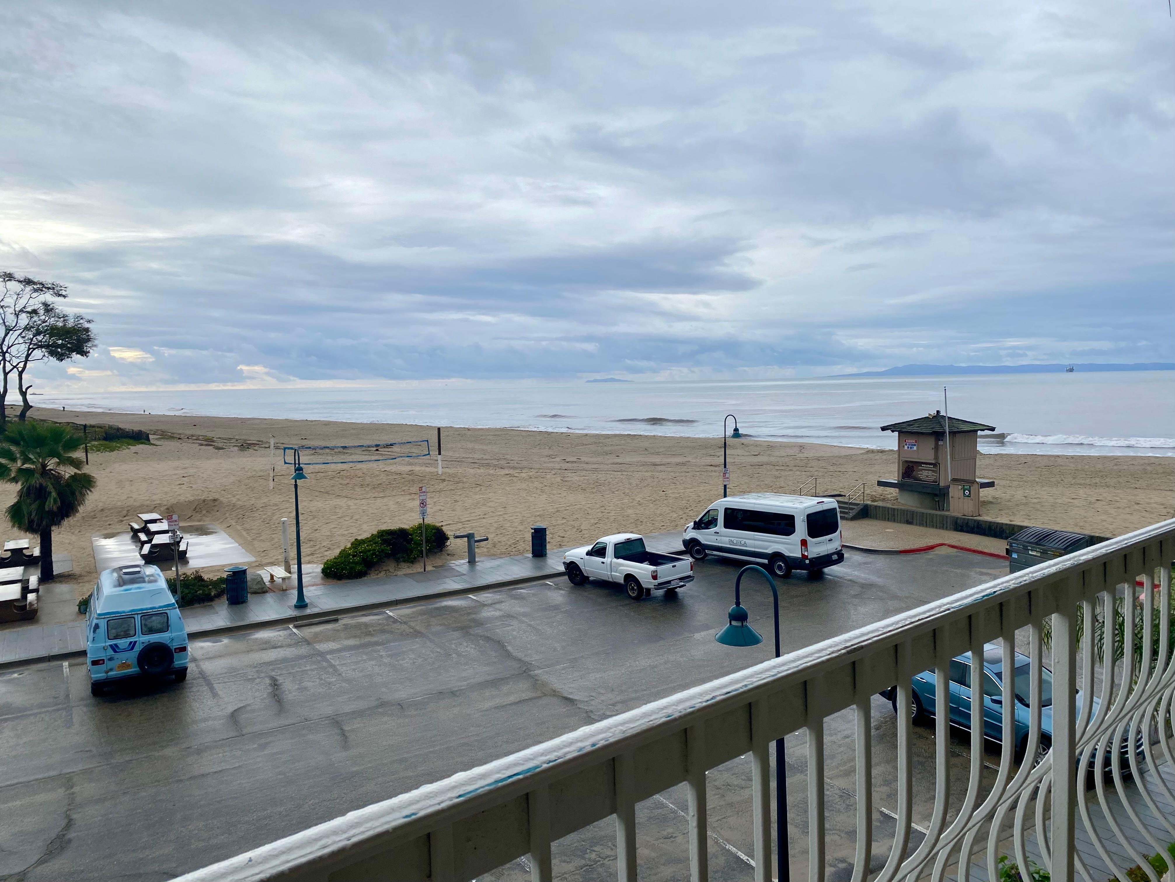 This charming, quiet third-floor, 2-bedroom, one-bath condo has gorgeous East facing views of the ocean, beach, and mountains and is conveniently close to the elevator and laundry room. Enjoy watching the sunrise and see clear to the Channel Islands on a clear day. Then, fall asleep each evening to the sounds of the ocean!