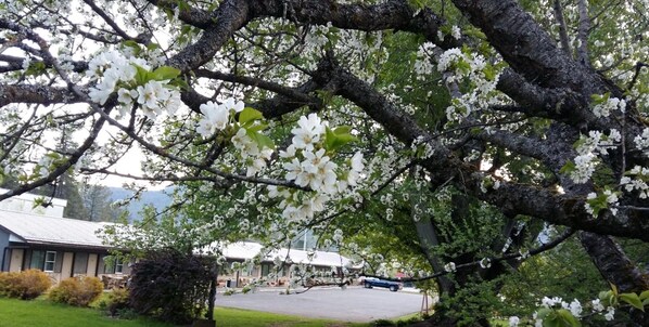 Despite the initial looks of the outside, the rooms are really nice. They're large, clean, and look recently renovated. They also have a BBQ and little space in the shade for people to sit & chat if you're travelling with others. I would absolutely return. It's right on the highway so easy to get to and it's right across the road from the Visitor Centre. Not everyone will care, but I have to recommend going to the park that's part of the Visitor Centre. If you stay here, you can walk and follow a short trail to a dog park. Despite being a dog park/beach, the water is nice and you can swim there. The park itself is really nice because they've clearly done a lot to upkeep the natural plant life. With so many berry bushes around I was shocked no bears attacked me. Truly beautiful little park. If you want to check out the Provincial Park, it's a 5 min drive (only more if you're like me and do some circles of the neighbourhood. This place is also about a 5 min walk from a grocery store/liquor store and 1 min walk from ice cream - and who can say "no" to ice cream?