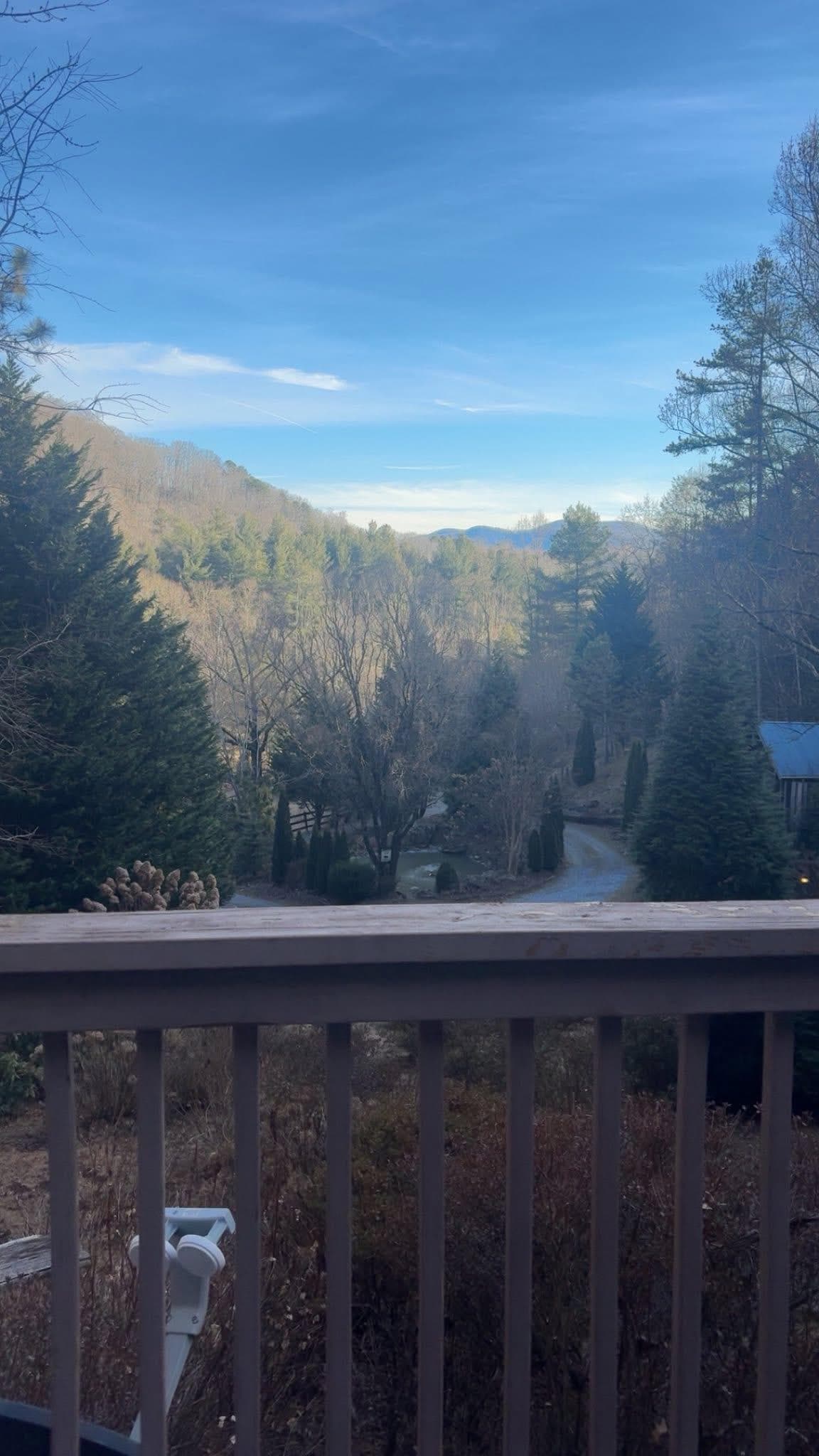 "My Place" is nestled in a mountain cove, with a year-round view of local mountains. In the winter, there is a distant view that will take your breath away. Nourish yourself in this peaceful cove while you enjoy the hospitality of the Smoky Mountains. The Cove at Fairview is conveniently located – just 15 minutes to The Biltmore House, 15 minutes to downtown Asheville, and 10 minutes to the Blue Ridge Parkway. Fine dining, local festivals, and mountain vistas are some of the local attractions our guests enjoy.