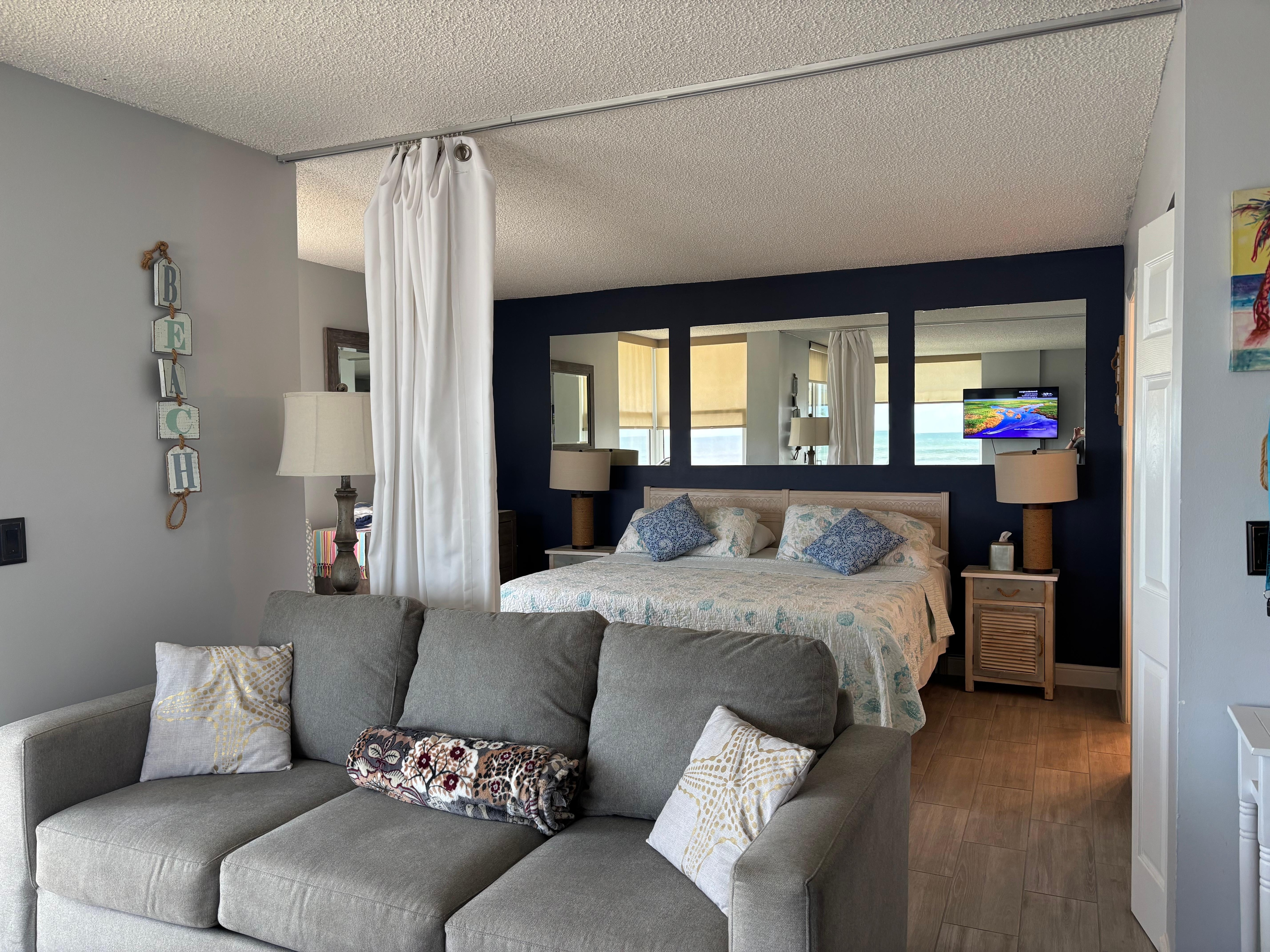 This open-concept studio is perfectly designed for couples or small families. The king-size bed is ultra-comfy, and the living area includes a pull-out sofa. A Pack 'n Play is also available for little ones.