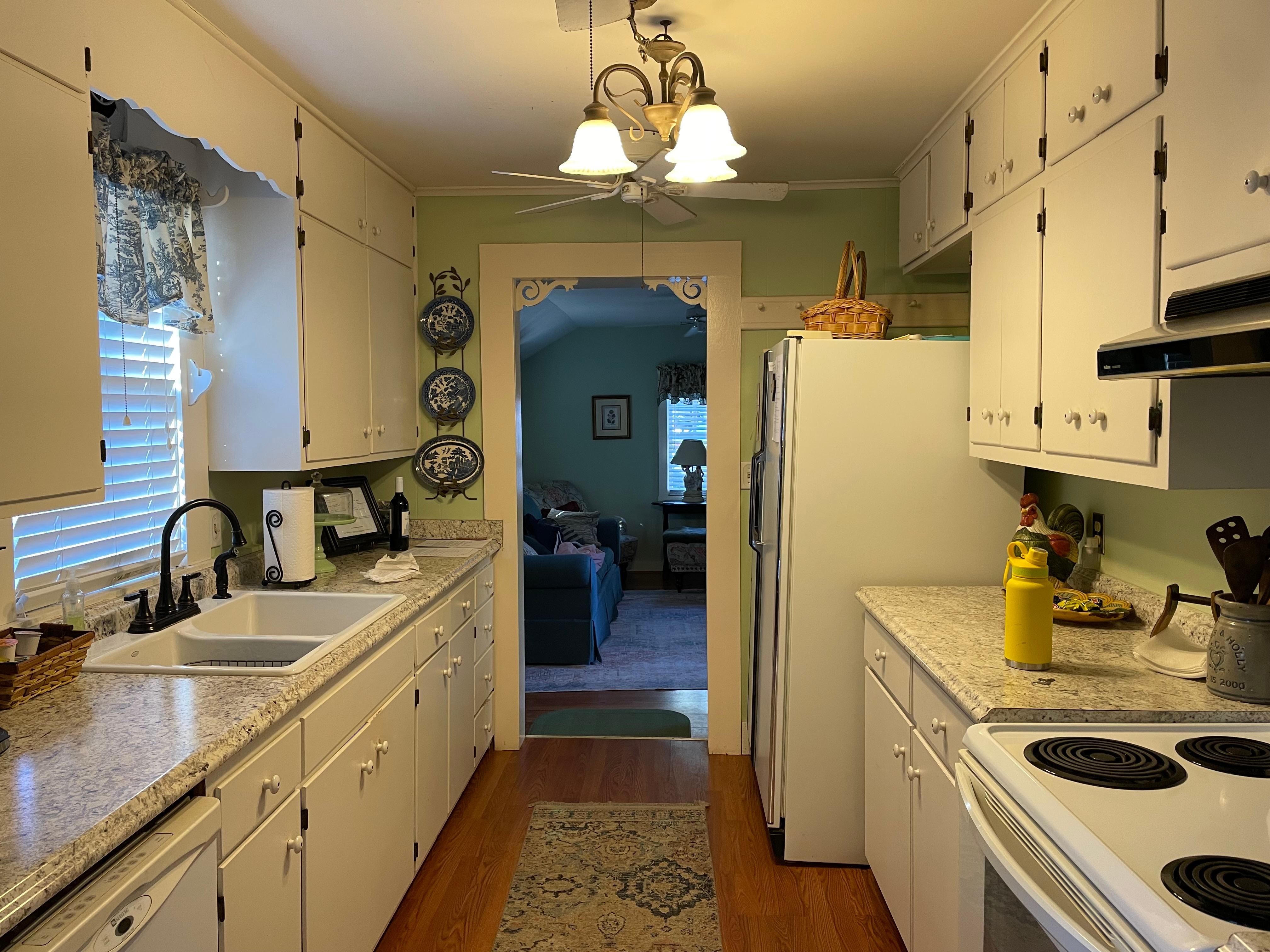 As you step inside you notice that the home offers not one but two comfortable living areas, as well as a full galley kitchen, complete with range, dishwasher, microwave and side-by-side refrigerator. The kitchen is just perfect for making a special meal to serve in the elegant red toile dining room. Or perhaps you'll just want to pop some popcorn and put up your feet to catch a movie or read a good book in the cozy den.