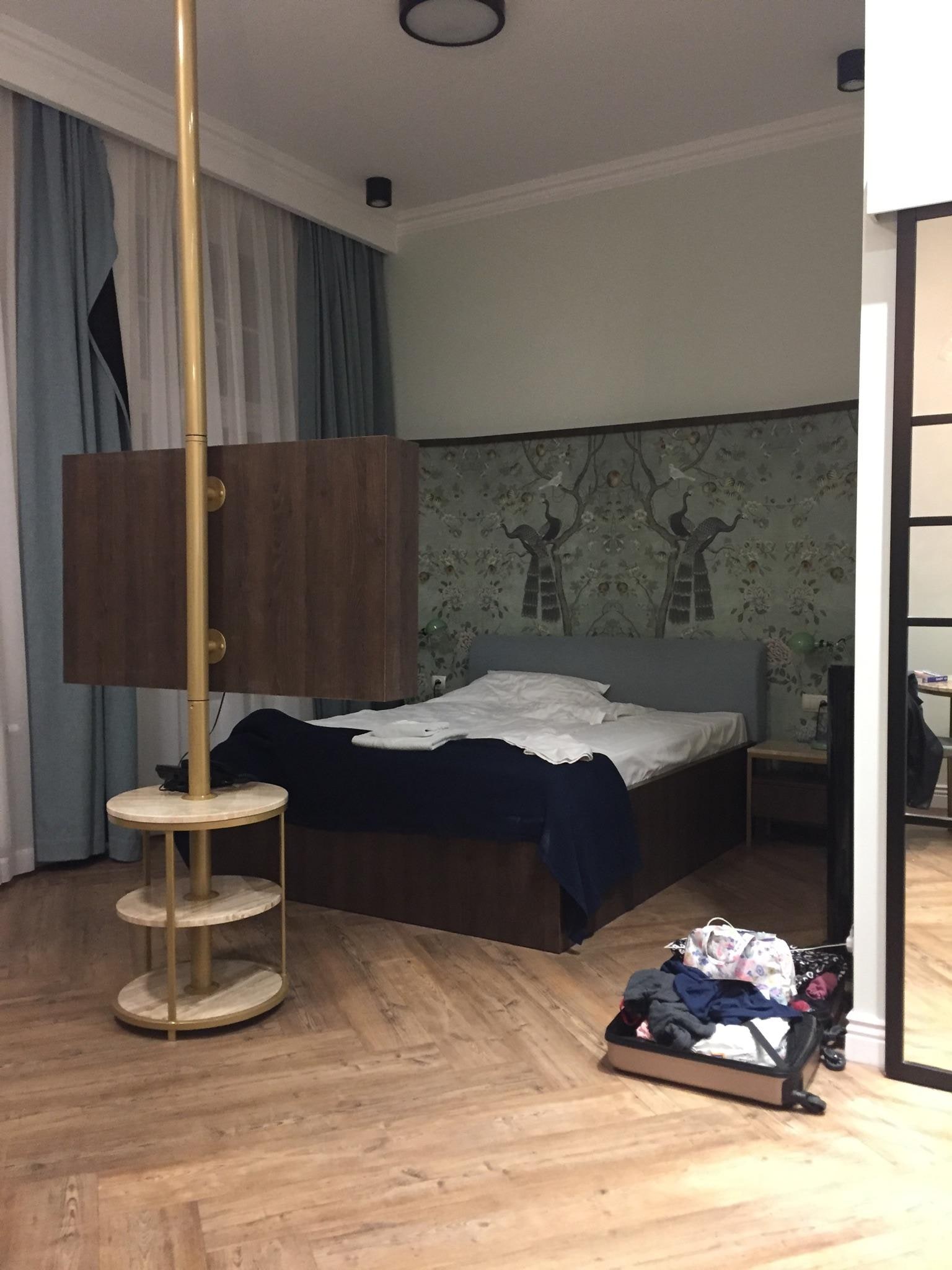 Cons: difficult to find in the first place especially on google maps, barely functional shower drainage in all apartments, very small shower box, no elevator, broken curtain bridge, insufficient electricity points to charge laptop and phone especially around vital areas “sitting and sleeping spaces”, no cleaning service.
