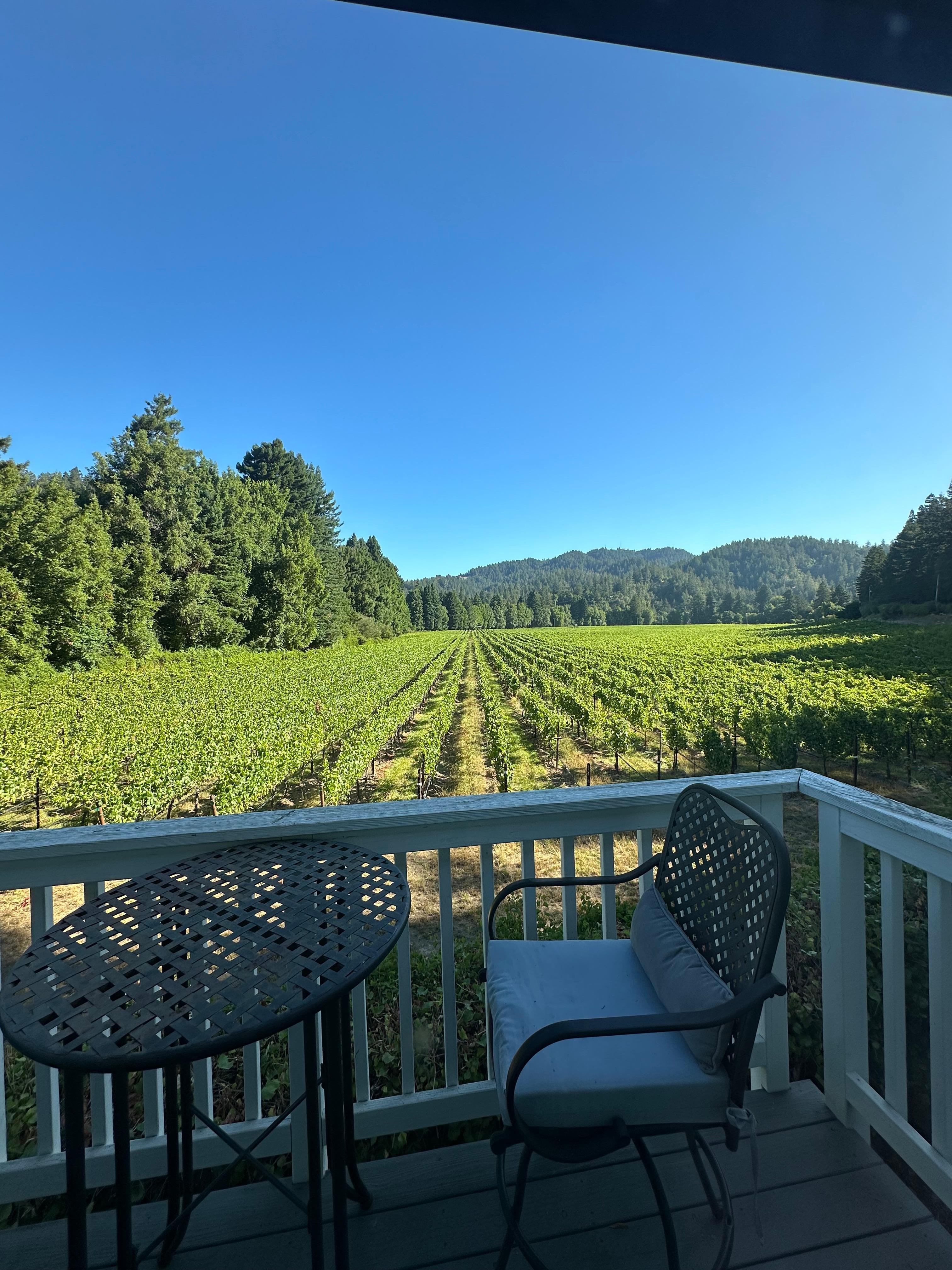 Set on a vineyard, this charming studio is ideal for a relaxing getaway in wine country. You'll have all the appliances and amenities needed to enjoy a romantic escape, a solo trip, or a fun getaway with a friend. The balcony overlooks the vineyard and offers a perfect spot for morning coffee and views of the fog lifting off the mountains.