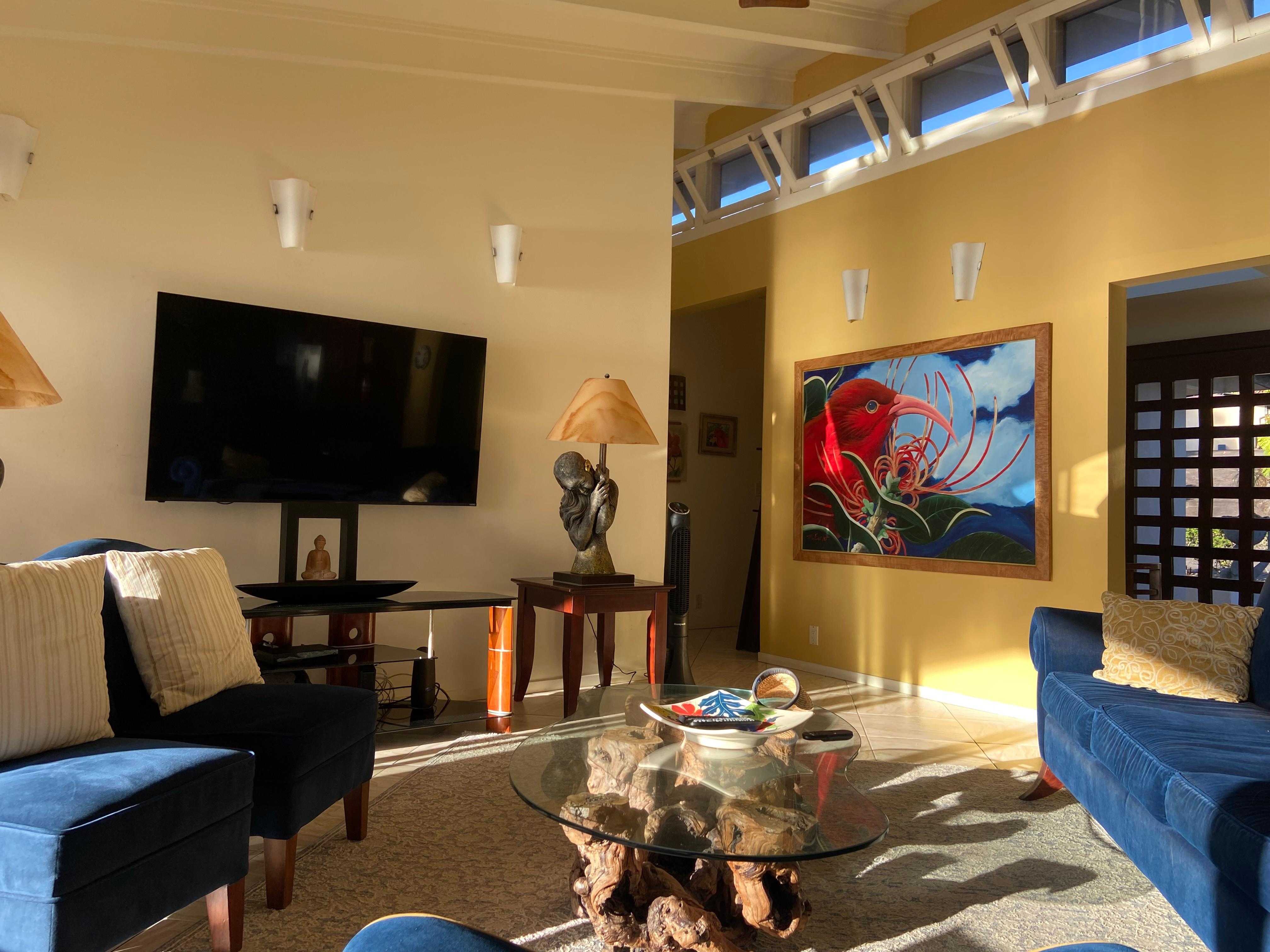 We felt like honored guests in someones home! Lovey art and sculpture about. Not a nick or flaw anywhere. Wonderful view and very peaceful neighborhood. We would recommend this home to everyone! Mahalo 🙂