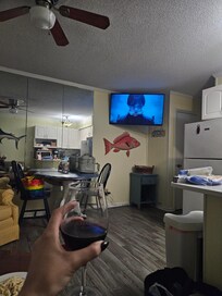 Wonderful place to stay! Lots of little touchs that really make me feel truly welcome, landry detergent, dish soap, towels folded together, toiletries, etc. The condo was clean, and well taken care of. They had appsolutely everything I needed to cook, different sized pots and pans, all the utensils you could ever need. All the appliances, oven, stove top, toster oven, coffee maker, microwave, and a fridge of course.The property itself was nice, clean, good parking, and gated. You had to enter a code to drive in. To get beach access you also had to enter a code to get out the gate, and then use the code to get back into the property. Overall a wonderful experience, would definitely recommend to a friend. And I'm sure I'll be coming back