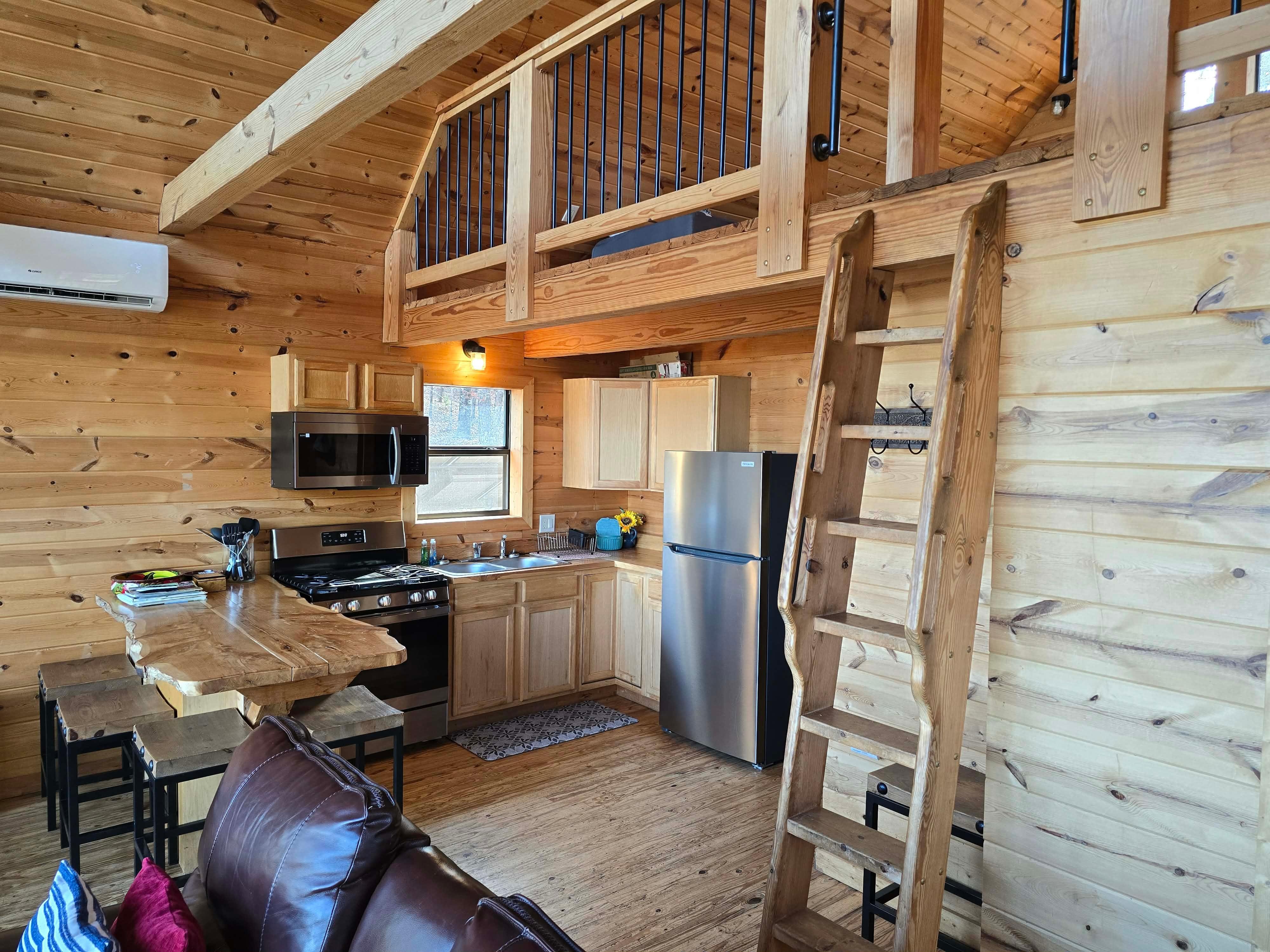 Note: While the ship's ladder leading to the loft adds to the charm and offers spectacular views, we ask guests to consider if this will pose challenges for their stay. There is also a bedroom downstairs.