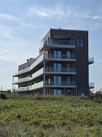 Modern und direkt am Strand, hier und da noch Verbesserungspotenzial. Bei Ankunft Treppenhaus staubig und voller Tierhaare, wurde nach wenigen Tagen gereinigt. Sehr nett: leckerer Sekt zur Begrüßung im Appartement.Sehr ruhig, Parkplätze vorm Haus. Gute Infrastruktur, zB Aldi 5 km u Edeka 1.200 m, letzterer mit Sonntagsöffnung.Strandlokale rundherum, leider kulinarisch etwas eindimensional, im Wesentlichen Currywurst u fishnchips.Hausmeister Manuel Krause kam wegen einer technischen Störung am Samstagabend, schnell und sehr freundlich, das war top Service.Bettwäsche und Handtücher nicht gestellt, schade in der Preisklasse, auch kaum Klopapier, nur eine Pfanne.Wer Hunde nicht mag, ist hier falsch. Viele Hundebesitzer machen hier Urlaub, allerdings benehmen sich die meisten Hunde gesittetLeider sind die Molen gesperrt. Sehr lästig und unkomfortabel sind die Schwellen, die überall im Resort quer über die Straße verlegt sind, um den Verkehr auszubremsen. Das gibt Schläge in Fahrwerk und Wirbelsäule und führt zu gefährlichen Bremsungen.