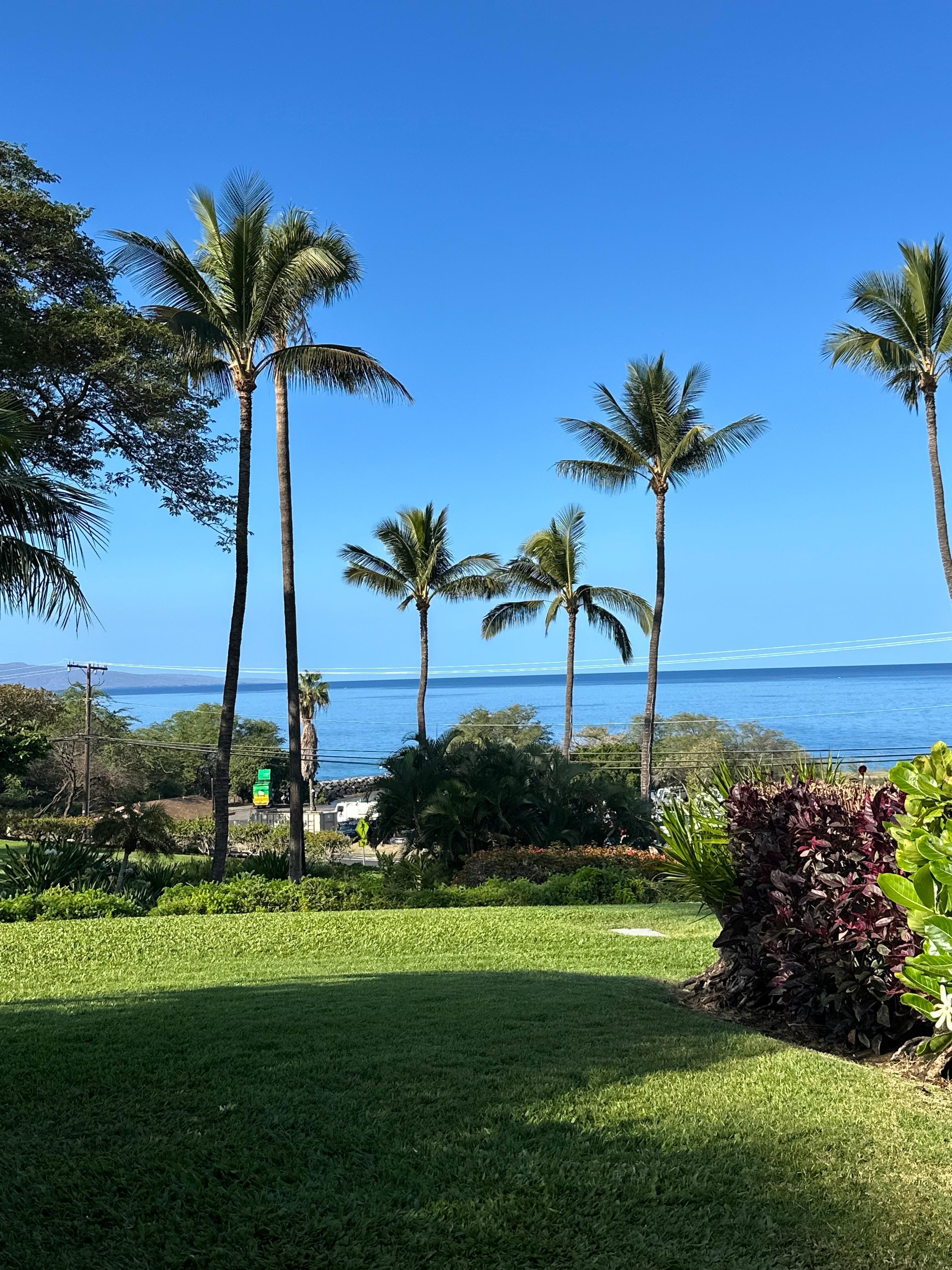 Why come to Maui and not be able to see the ocean? Enjoy dining from my lanai looking right at the ocean! My one bedroom condo in the Ginger complex (G-104) is your paradise! Over 20' wide living room, 1039 sq. ft. 2 baths, large master bedroom with a king bedroom set. The spacious living/dining/kitchen area includes an adjustable large flat screen TV (you could even watch it from the lanai or kitchen or bed), ceiling fans, and desk (free internet). The queen daybed is perfect for reading, an afternoon nap, or your company to enjoy (no uncomfortable hid-a-bed in my condo). The master bedroom is also quite spacious with another flat screen TV and DVD player, and a courtyard for hanging wet clothes, storing toys, boogie boards, etc.
