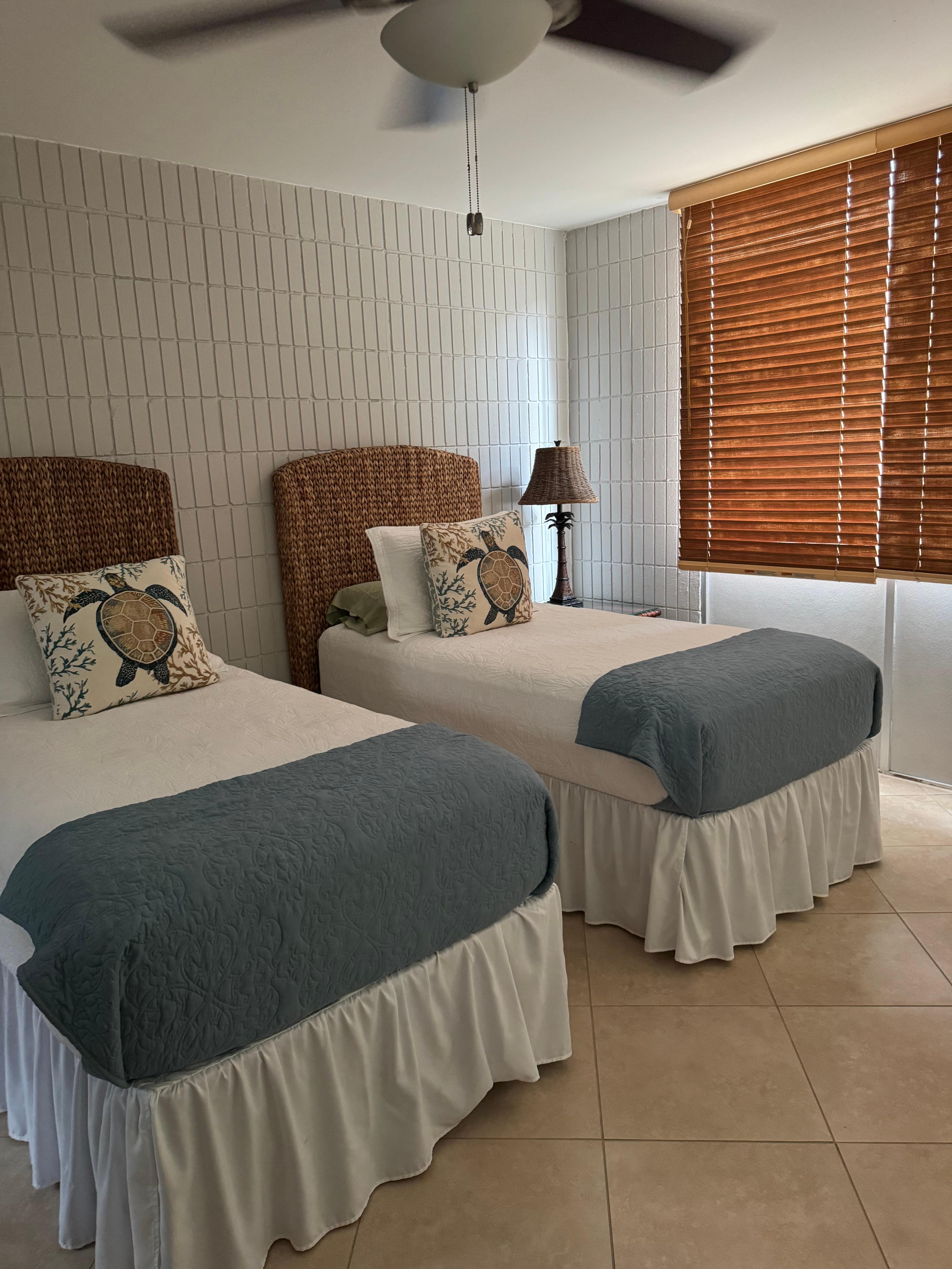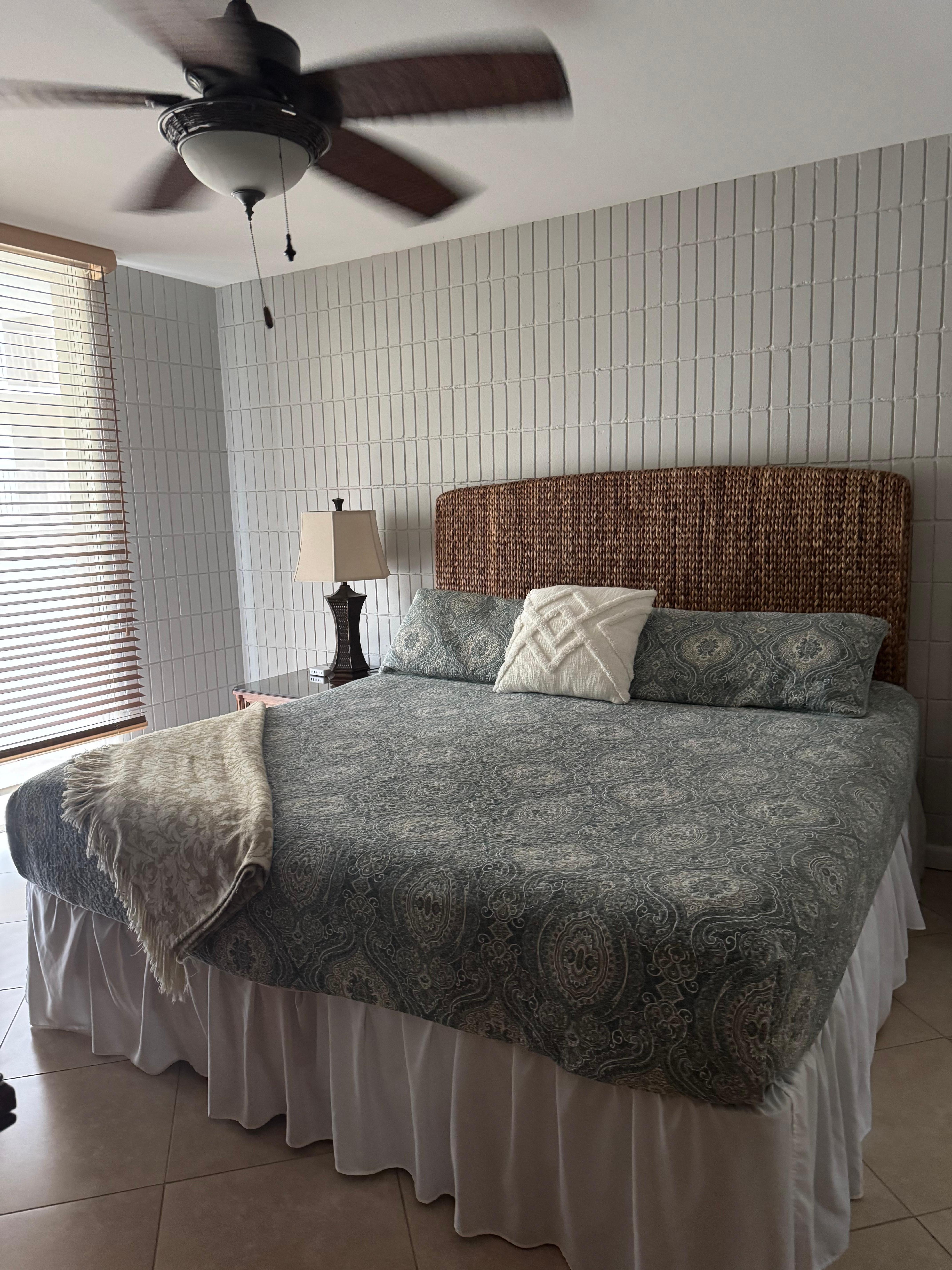 You will find both ceiling fans and air conditioning in our condo along with louvered windows.