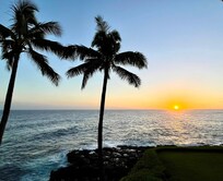 After a long flight, you turn the key to the door of your new vacation home and step inside. After putting your bags down, you're drawn to the beaming natural light coming through the sliding glass door at the oceanfront end of the condo. You unlock the door and step out onto the lanai, looking in awe at the rocky sea cliffs to the east and the beautiful Poipu Beach Park to the west. Sea breezes and sunbeams brush your hair and face, the sound of the waves below you fill the air with Kauai's oceanic symphony. You have arrived.