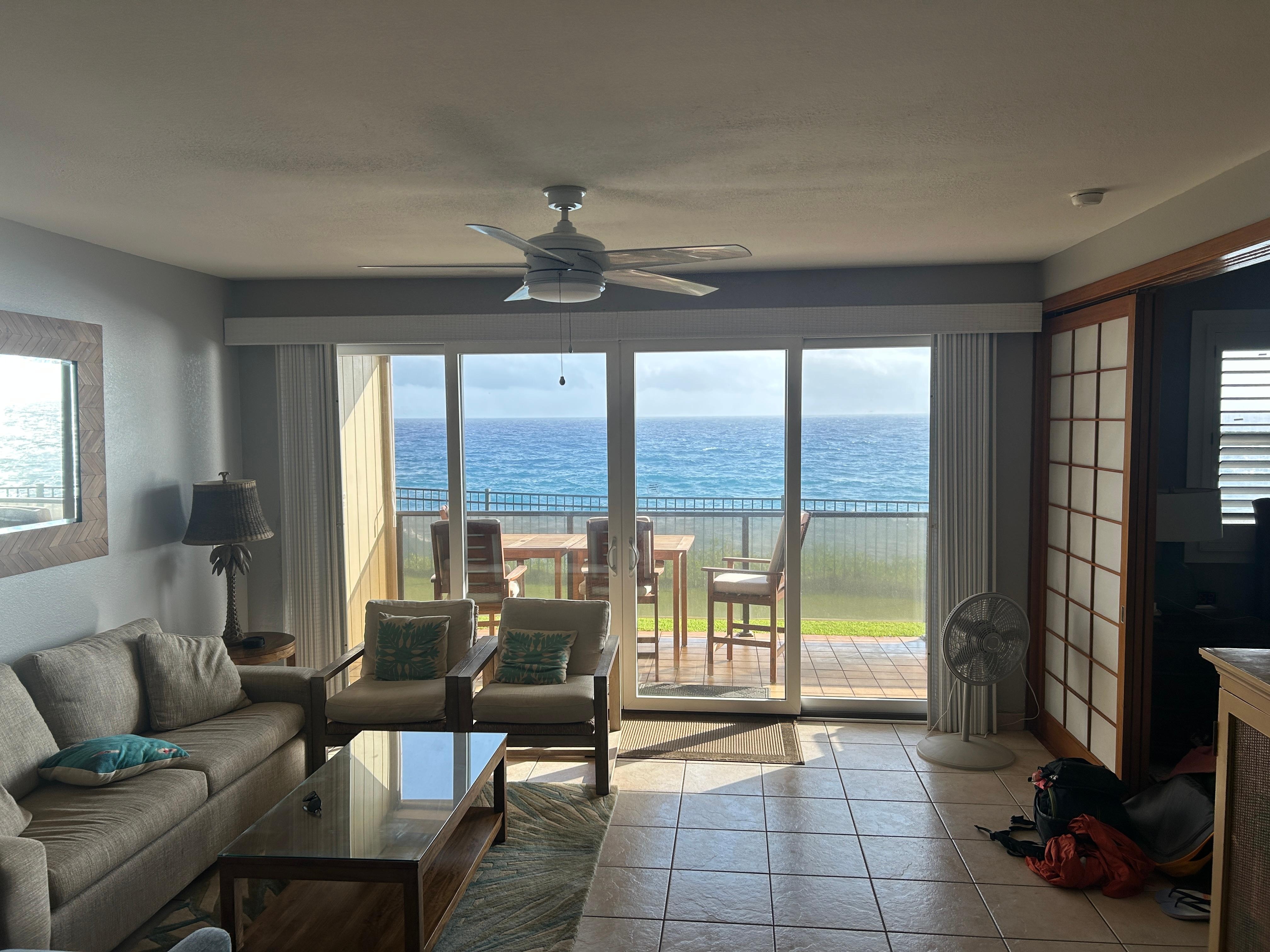 Amazing location! Looks right over crashing waves. Spacious, had everything we needed. Both beds super comfortable. Air conditioning the best we’ve had anywhere in Hawaii. Responsive host. We’ll hope to stay here next time.