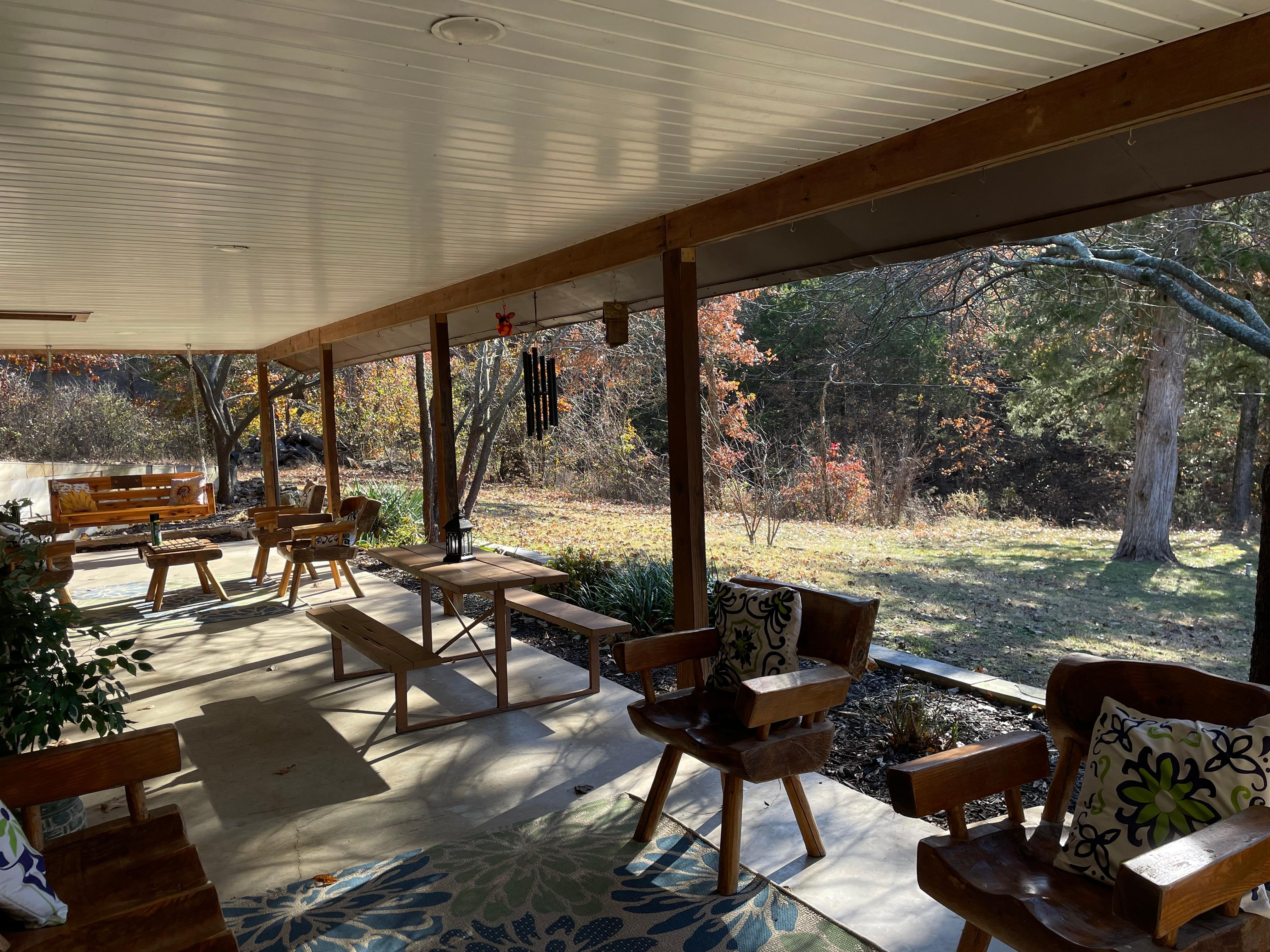 This recently fully renovated 1200 sq foot cabin is located on the wooded hillside of a 118 acre property that features a historic small working farm, an abundance of wildlife, stunning western sunsets and just minutes from the lake. Our farm operations currently include chickens, chukar, quail, guineas, turkey and goats with dairy and beef cattle coming in the Fall of 2024. This unique rental is located in the midst of the breathtaking Ozarks country, with access to Table Rock Lake, Persimmon Hill Berry Farm, Dogwood Canyon and Camp Kanakuk only minutes away. We are just under 40 minutes to Downtown Branson, Silver Dollar City, and all of your favorite Branson entertainment. Make your stay truly differentiated with farm to table fresh eggs in the morning and ask about our availability to give a tour of the small farm and an opportunity to learn more about our animals.