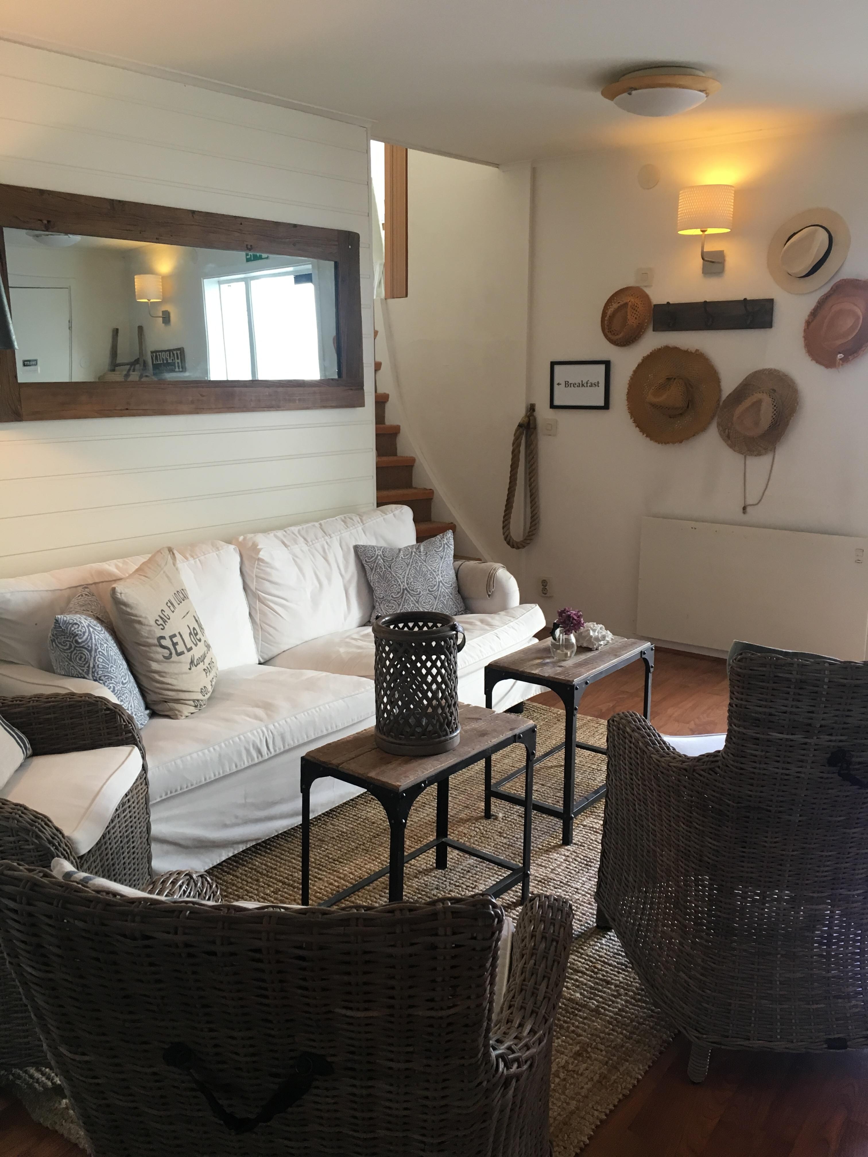 We thought it was a high price for the size of room, but it is Sweden, and a popular beach vacation island area, so it was probably reasonable. The hotel is quaint, mice views of the harbor/sea area, good breakfast buffet, and comfortable beds. It was odd that you have to check in at a completely different hotel, and they didn’t give hotel information to every room in our party of several different related families. It was often hard to find the person who worked the front desk - she clearly has very many duties around the hotel, which mildly impacted our stay as we were unable to go for a planned swim on the last day because we and the breakfast staff were unable to get in touch with her to get a robe to walk down to the sea that the hotel provided, and we were concerned about being too cold on the way back to the hotel after getting in the chilly sea, and also not comfortable walking through town in just our bathing suits. The other odd thing was that the servicing of the room came very late in the day, and was barely noticeable. They folded up a used towel that was hanging up, but still damp, and water stamped the toilet paper. As far as we could tell, that was all that was done. We didn’t really need more, so we didn’t say anything, we just thought it was odd.