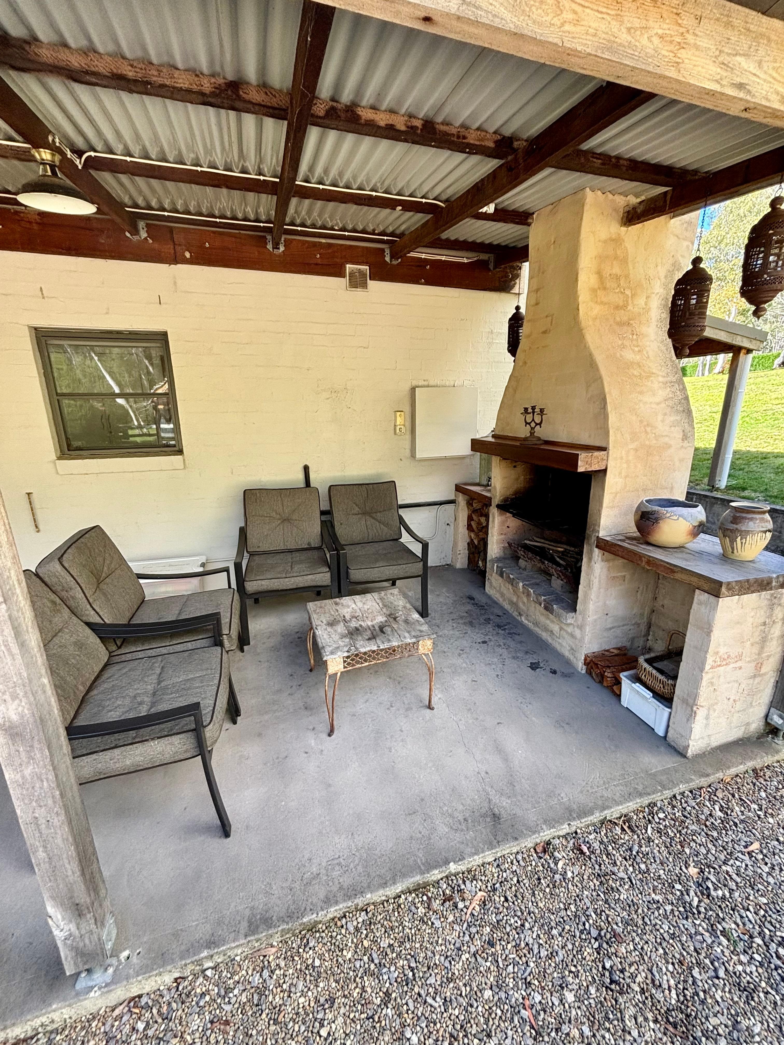 Sink into comfy chairs in front of an open wood fire on chilly nights on the covered rear verandah or cool off under the ceiling fan while alfresco dining in warmer weather.