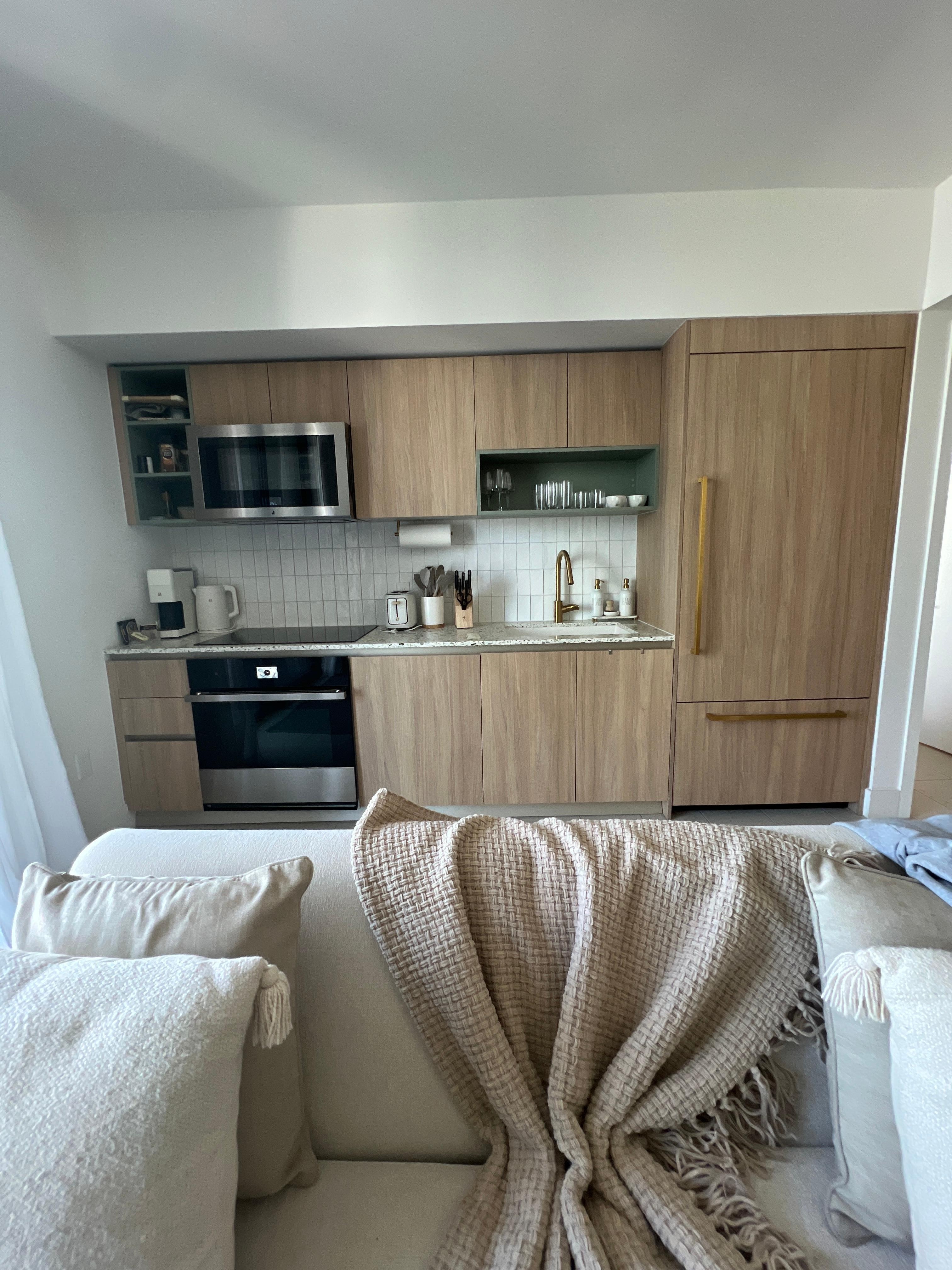 - Modern kitchen with oven, microwave, dishwasher & full-size fridge