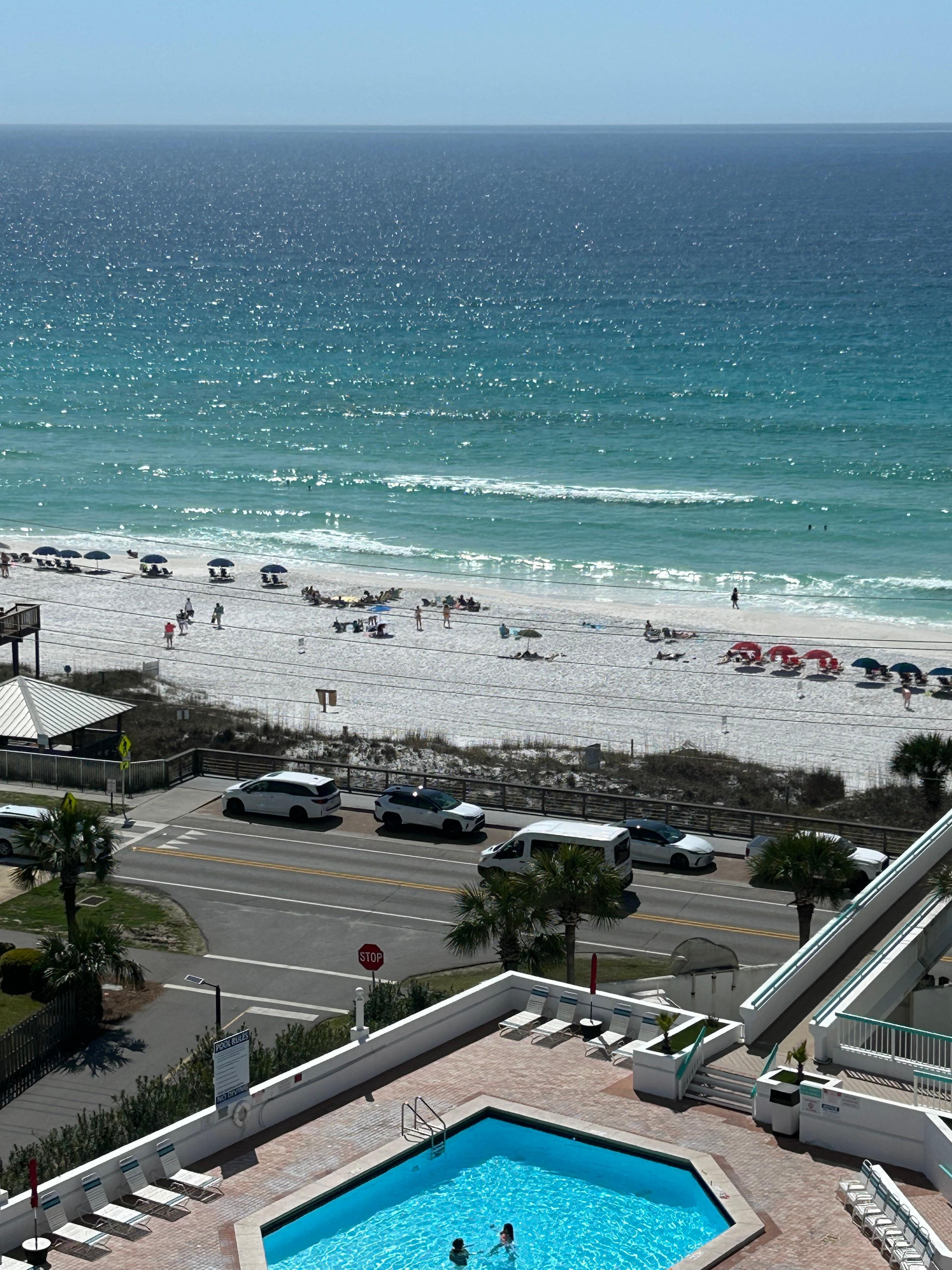 Surfside has one of Destin's few Out Door HEATED pools with a very large deck area including two hot tubs, separate kiddie pool. You can watch your teenage children swim at the pool from your 9th floor balcony. Surfside has 2-lighted tennis courts, basketball court, pickle ball court, exercise facility, beauty salon and onsite massage spa. Unit is on the preferred poolside with fantastic Gulf View! Staying at our unit includes a free beach service set up of one large umbrella & 2 chairs during March 1 - October 31. This is a SAVINGS OF $55 A DAY!!
