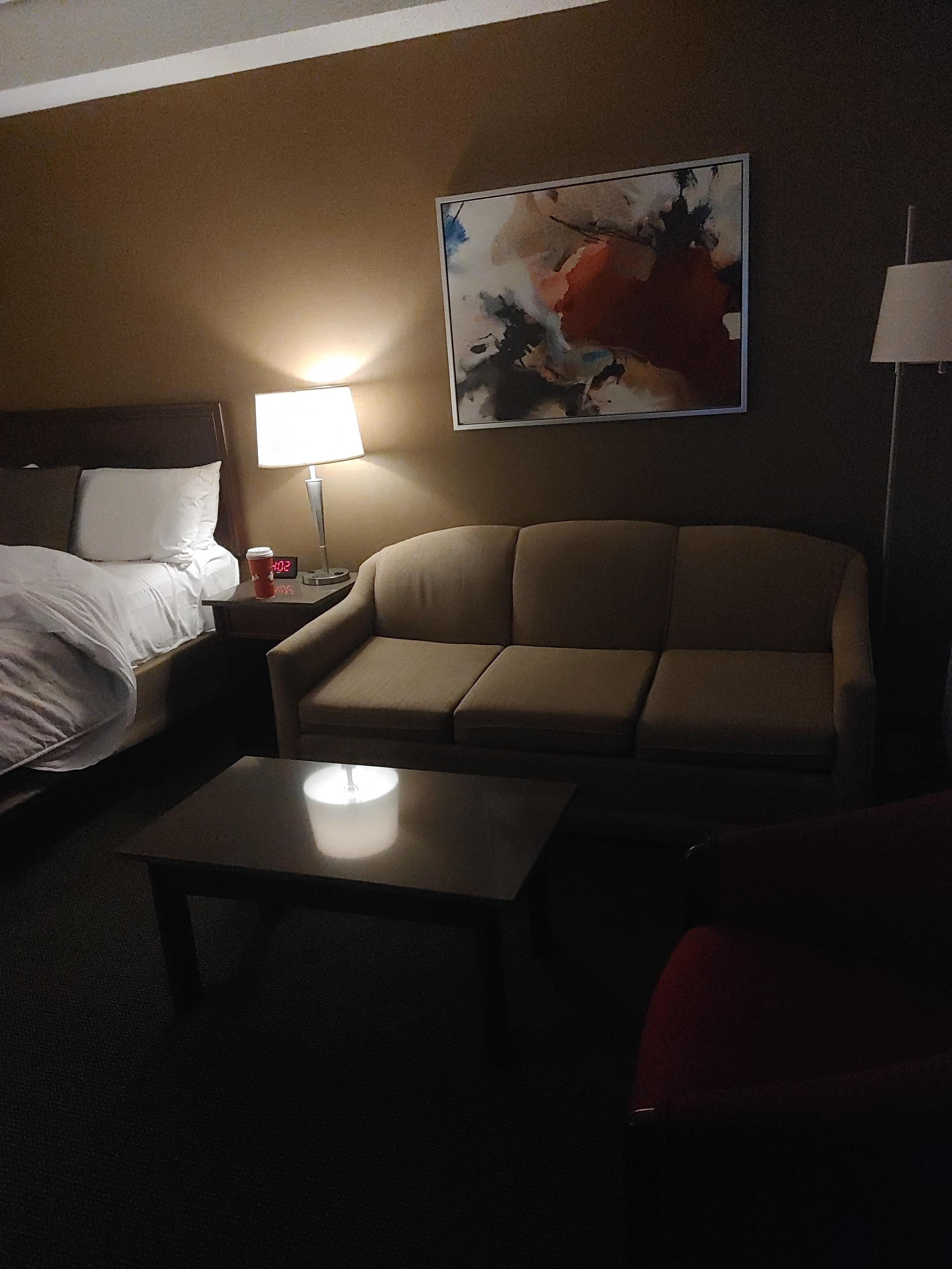 Great room, excellent pool, hot tub and sauna features. Hotel is quiet and close to amenities. Staff are friendly and very courteous. Breakfast was not for me although I enjoyed the fruit, toast, and hot chocolate. Would recommend this hotel to anyone wanting to visit Montreal area. Great overall value!