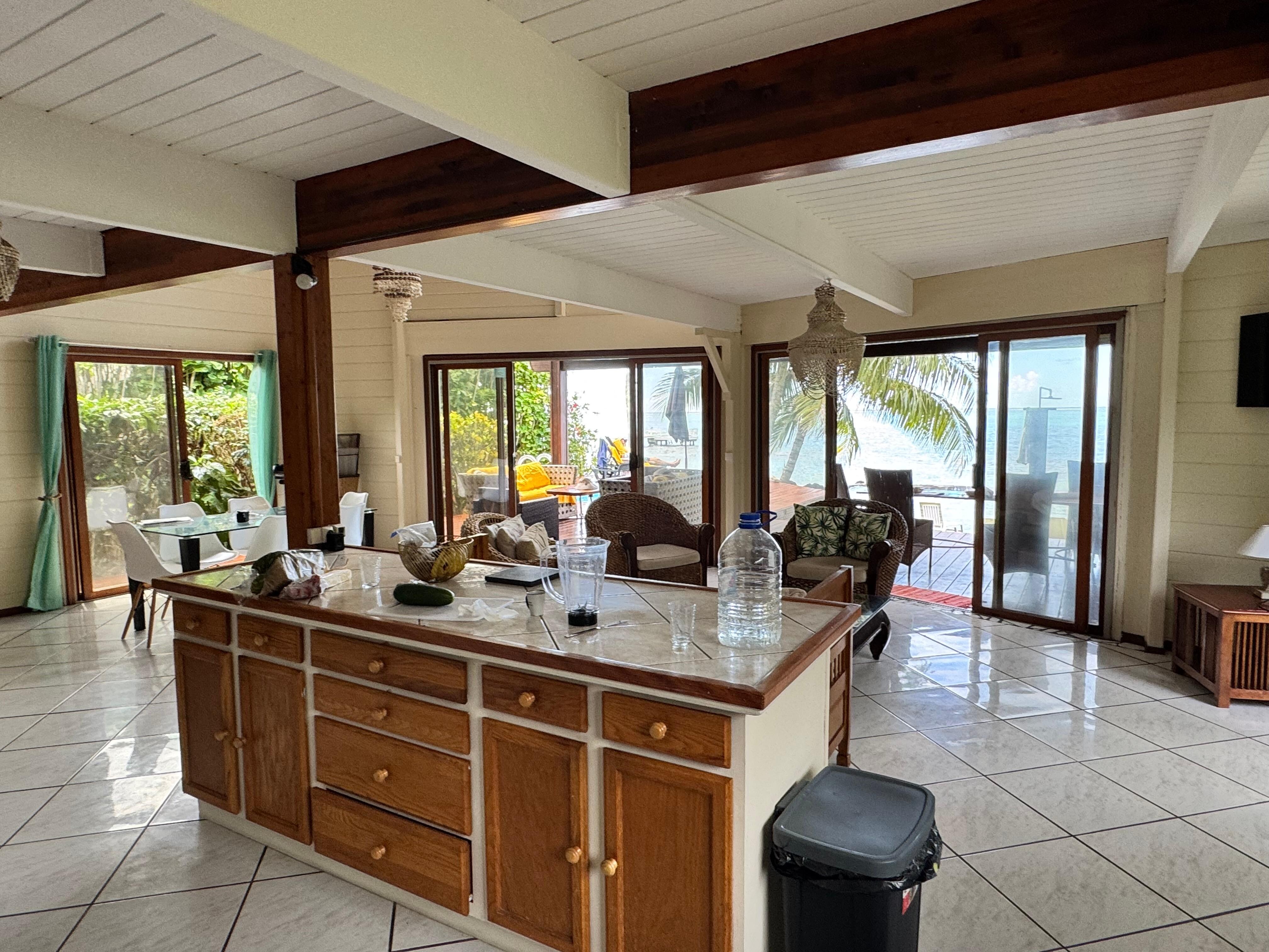 This 200m² lagoon-front villa with its beach and pool is located in the center of the village of Maharepa Moorea.