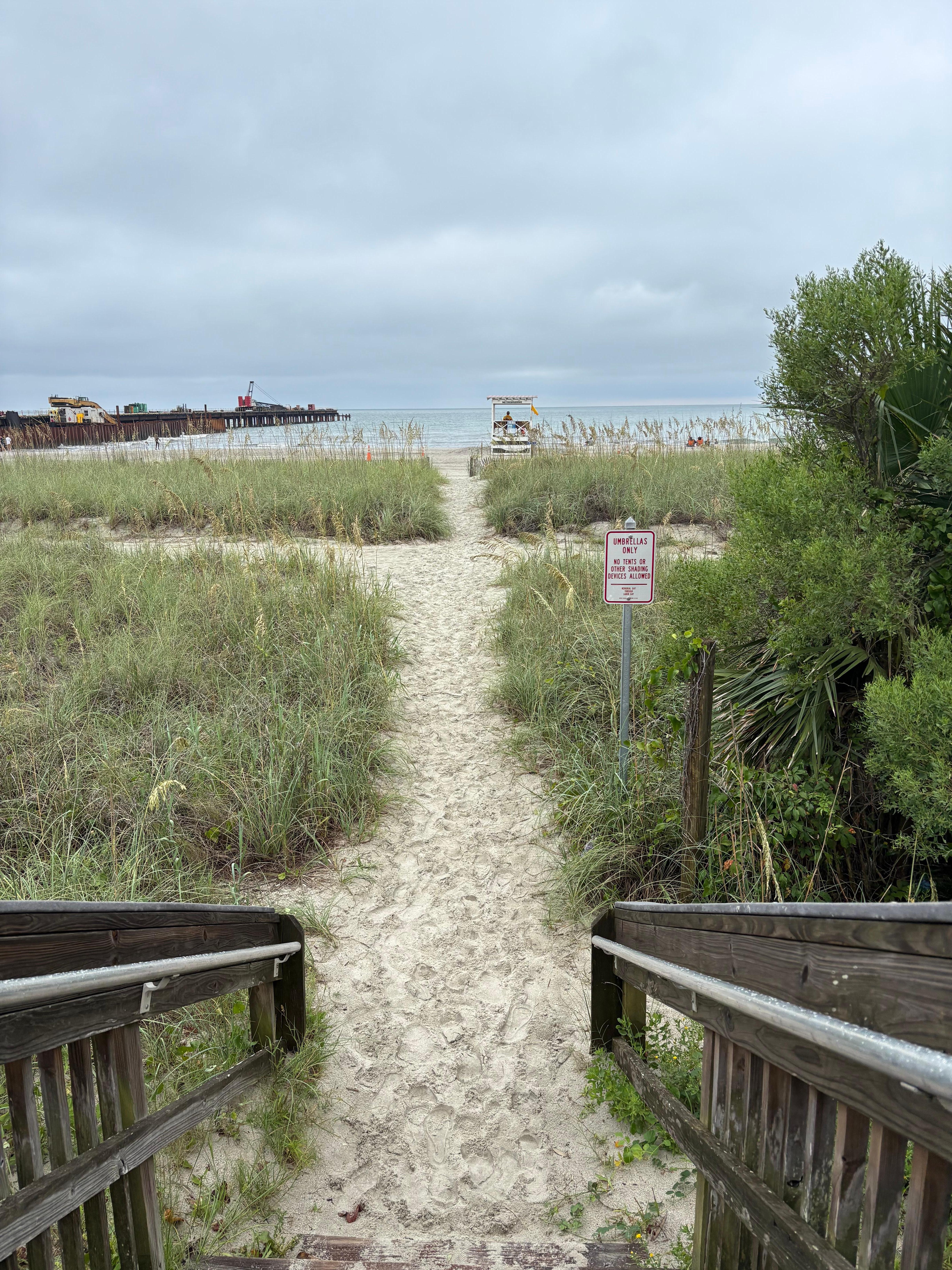 Meridian Plaza is walking distance to the boardwalk area. Currently construction on the ocean outfall project at 24th Ave N is ongoing. Enjoy all the amenities of home, including free Wi-Fi, washer and dryer, and beach gear. Take a dip in the oceanfront pool or soak up the sun on the private beach, just steps away from the building.