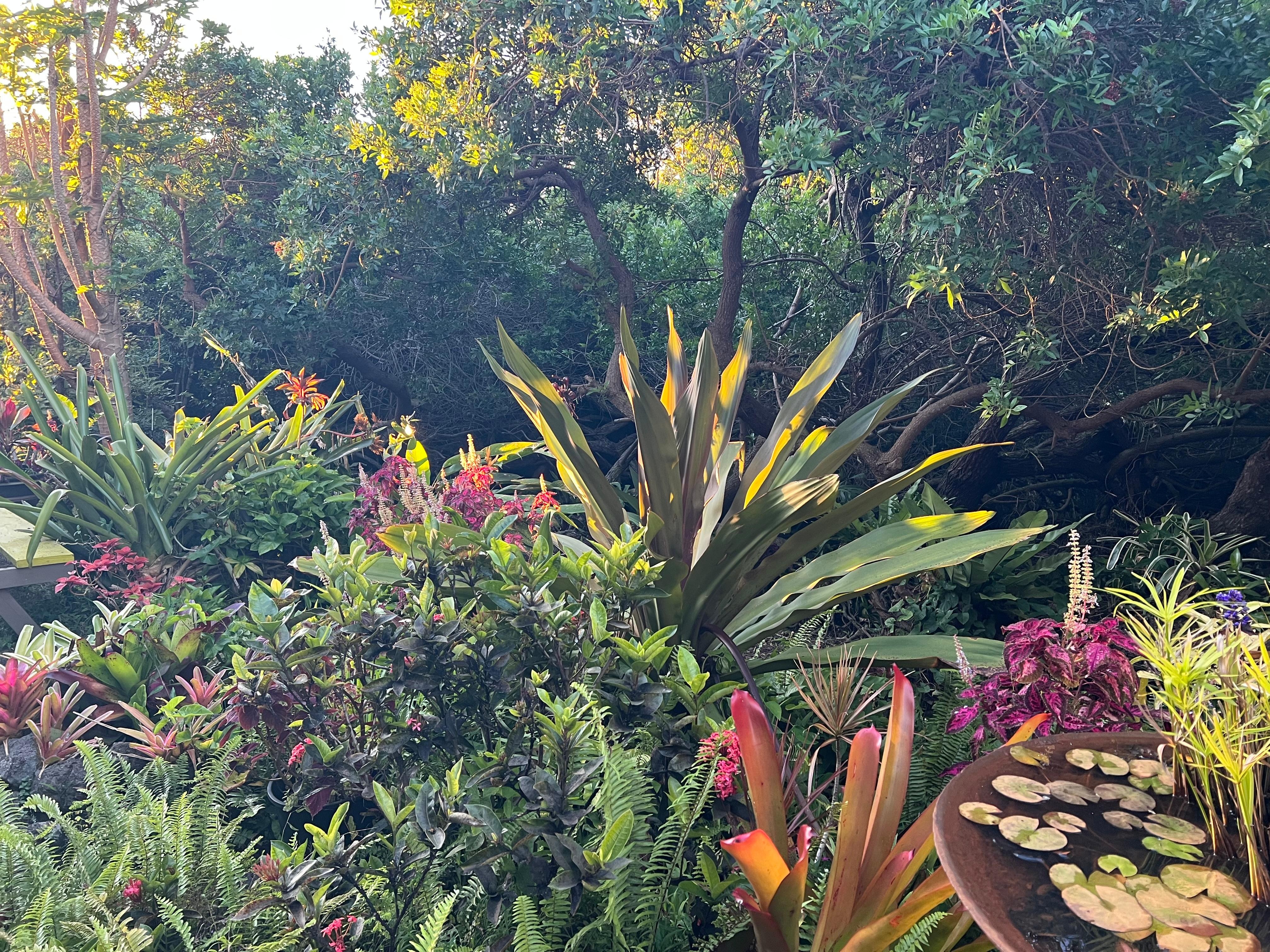 Beautiful gardens and lovely accomodations. Clean and colorful unit with everything we needed. Proximity to south point was great for partner to go fishing off the shore. No AC, but weather is cooler and great breeze coming through house. Evenings were filled with frogs singing. Host was very welcoming and helpful. Would love to stay here again.