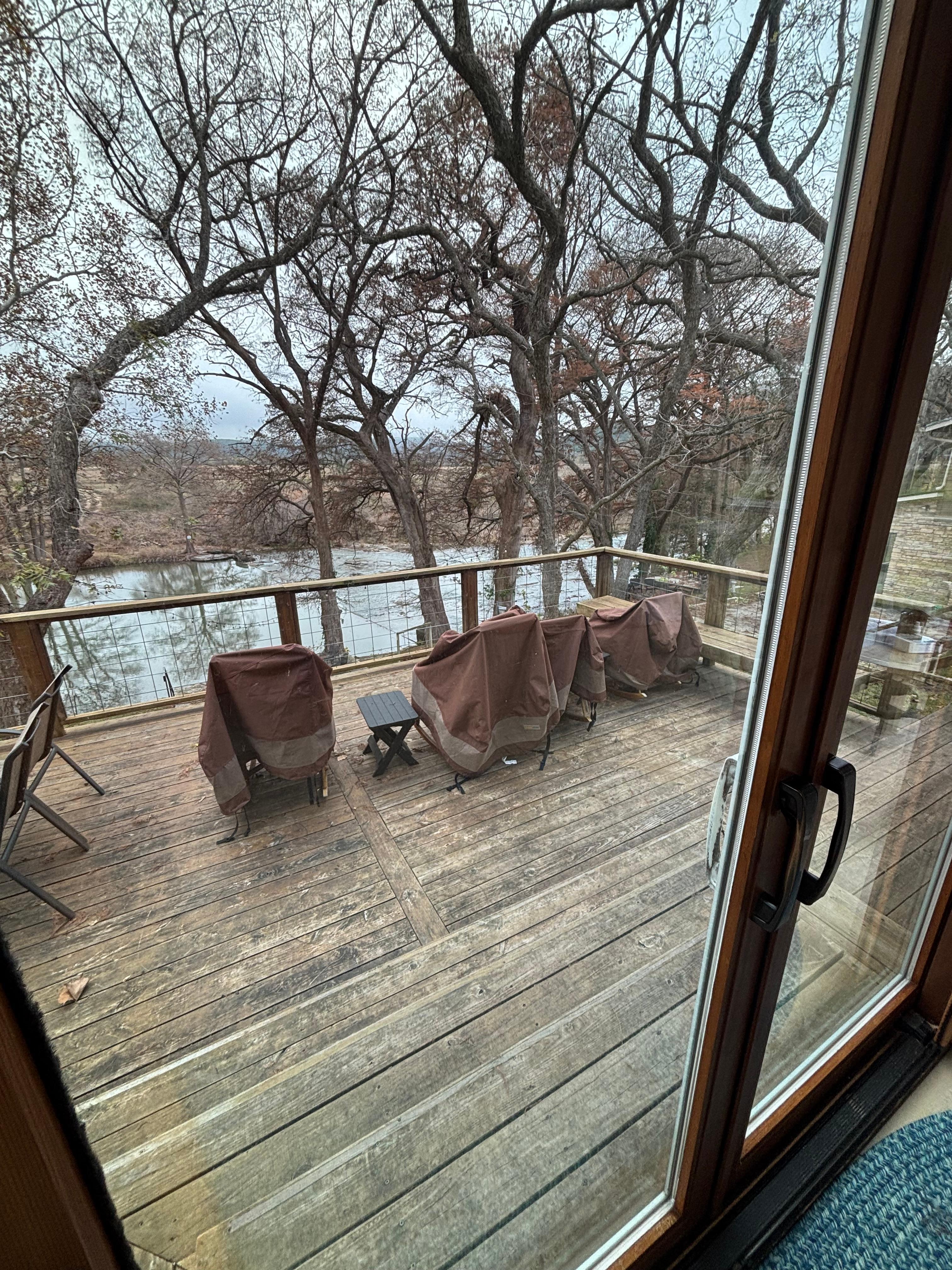 A picturesque waterfall runs across this quiet stretch of the Guadalupe River, creating a perfect place for wading on one side, and for exploring or just putting our lawn chairs in the river and relaxing on the other side. The location is perfect for using our kayak, and you can tube right out our back door. A favorite pastime is watching the river go by from the three-tiered, large riverside flagstone patio. It is also a wildlife magnet, with osprey and heron fishing here. Oh, and so do the fly fishermen, as this trophy section of the river is stocked with trout from November through February directly across the river. All of this can be enjoyed from the brand-new sunroom and deck outside of this charming, well-appointed, and recently remodeled house with all of the creature comforts. The many activities of Canyon Lake, Gruene, and New Braunfels are also just a short drive away.