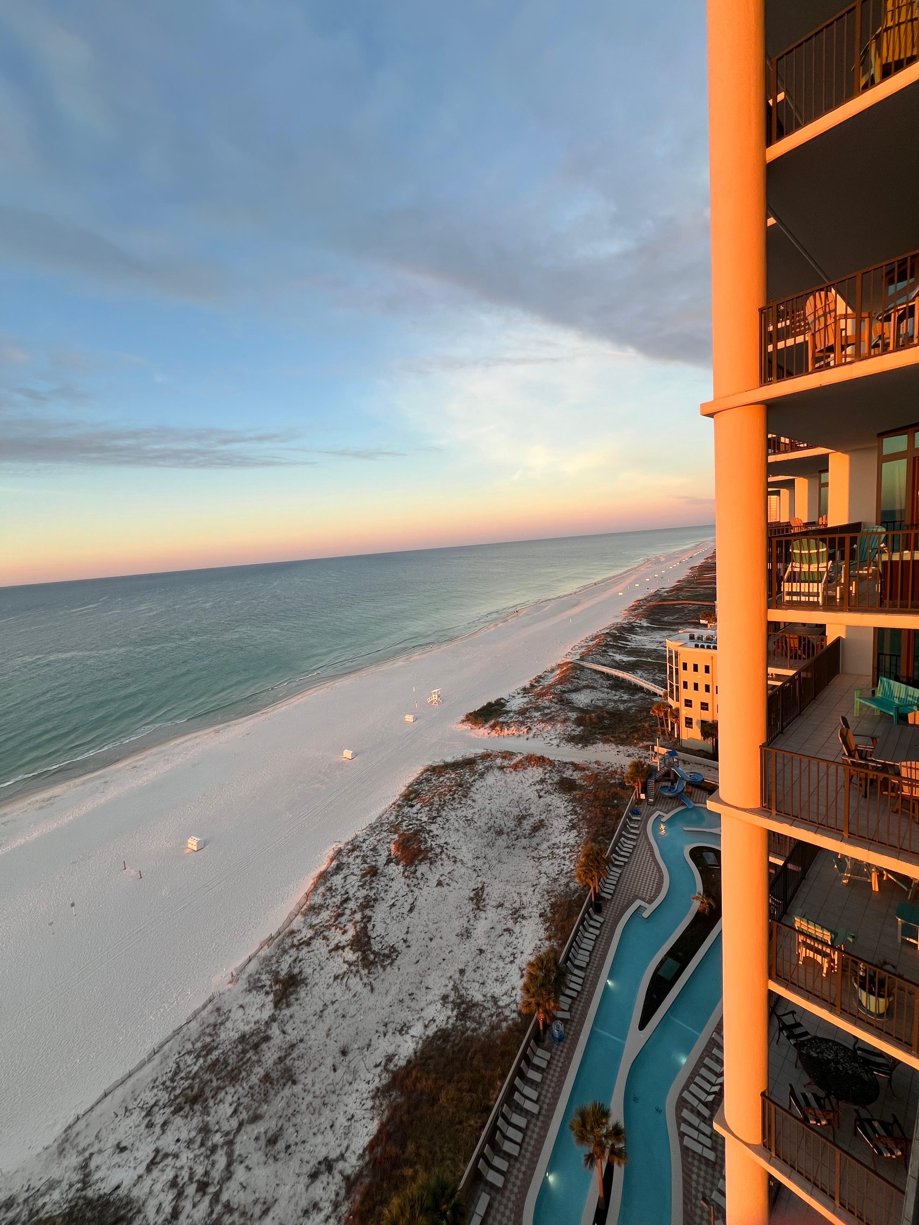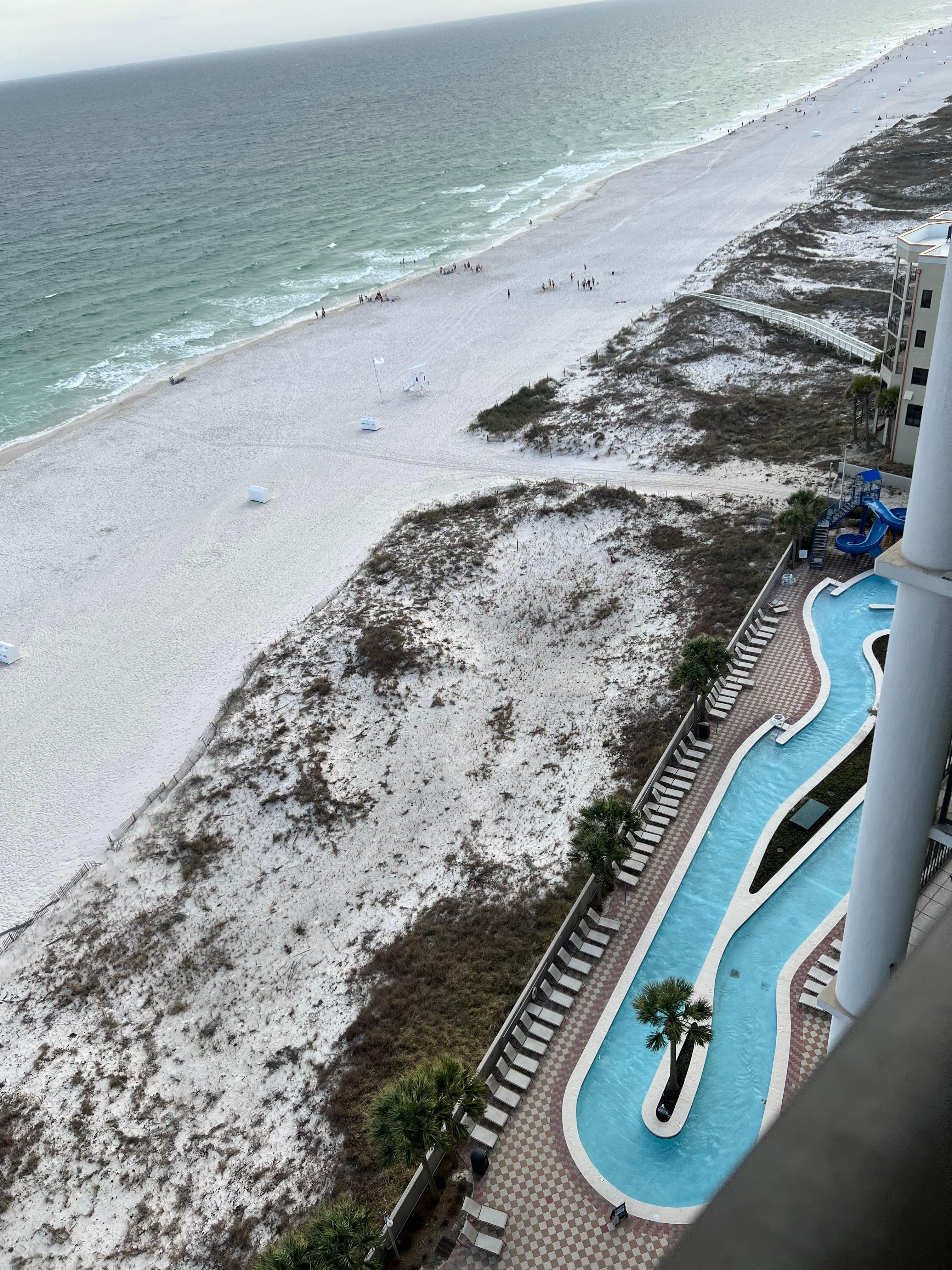 We didn’t get to enjoy the outdoor pools pool with unusually cold temperatures for the middle of March but the indoor pool was ok except for a very strong smell of chlorine. The condo was great with an incredible view of the ocean. The Oasis has lots of amenities. We loved the onsite restaurant and walk up bar. Great stay overall!