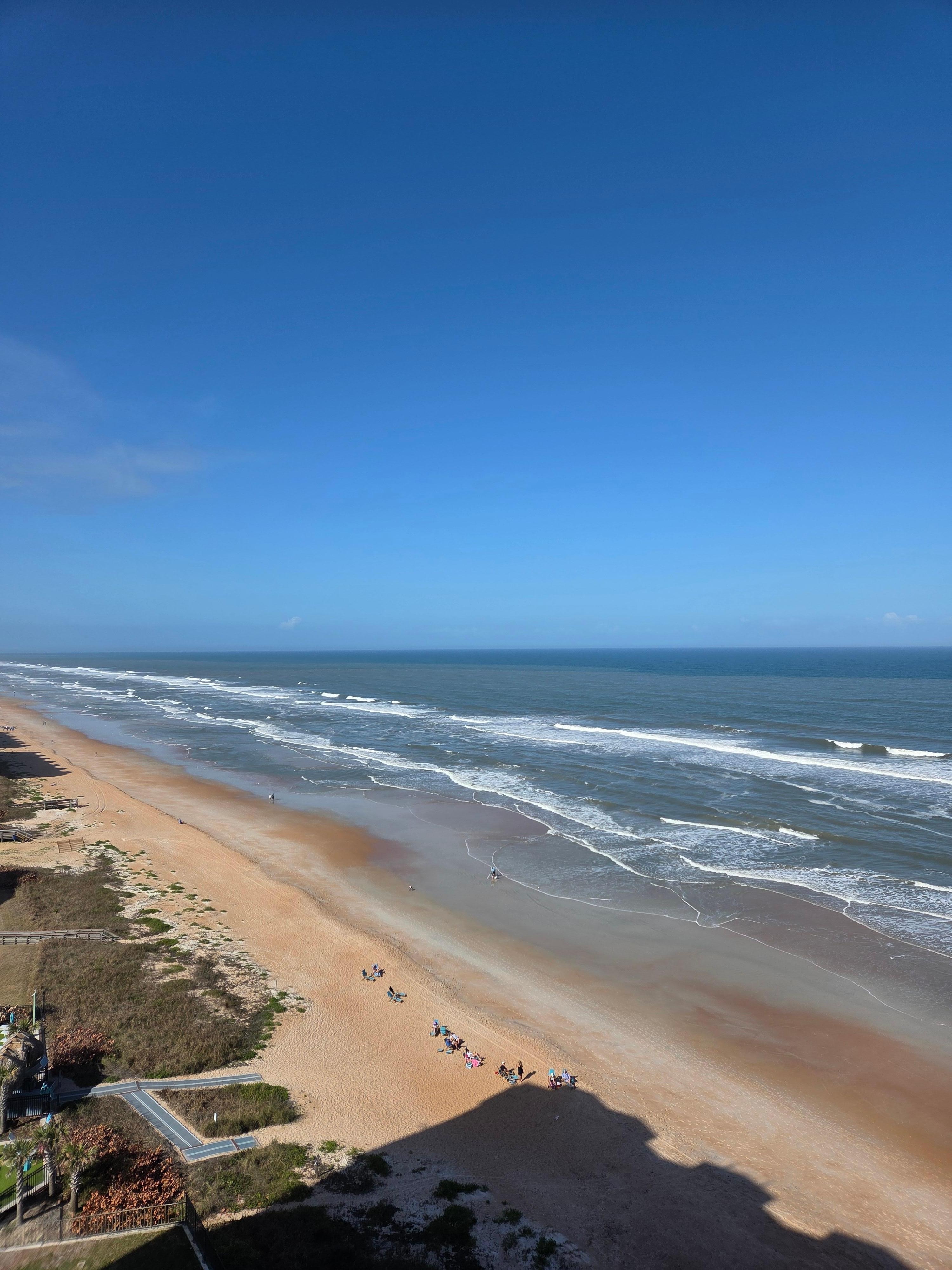 Brand New, 2 bedroom, 2 bathroom oceanfront family-friendly luxury condo with all amenities included. Enhanced cleaning protocols based on CDC guidelines and contact-free check-in & check-out. High-speed wireless makes for a perfect “flexcation” if you need to do some work. And ample parking is available in our private lot. The Van Lee building is in the best location on beautiful Ormond Beach. Unit 1205 has been completely remodeled with high end finishes and lots of extra touches to provide the feeling of staying at a 5 star luxury resort suite. Six can sleep comfortably with a queen-size “air-dream” sofabed in the living room. The master suite is designed for the ultimate in comfort with a plush king-size bed, a balcony, its own bathroom and separate vanity/dressing area. The guest room is equipped with two twin beds, a desk, a nightstand and has a view of the intracoastal waterway. Every room is equipped with a large screen SMART TV and cable is also included. The spacious chefs kitchen has a large peninsula with bar seating and is equipped with everything you could possibly need to cook your favorite meals or just relax and socialize with family and friends. Your own private, full-size washer/dryer is also included. The condo is located directly on the ocean with a private access gate to the quiet (no-drive) beach or you can watch the waves roll in while relaxing by the pool. If you prefer a quiet spot indoors to read then you can enjoy a book in the library located on the main lobby level. If you don’t want to miss your workouts while on vacation you will appreciate the fitness center with a treadmill, rowing machine, weight machine and dry sauna!