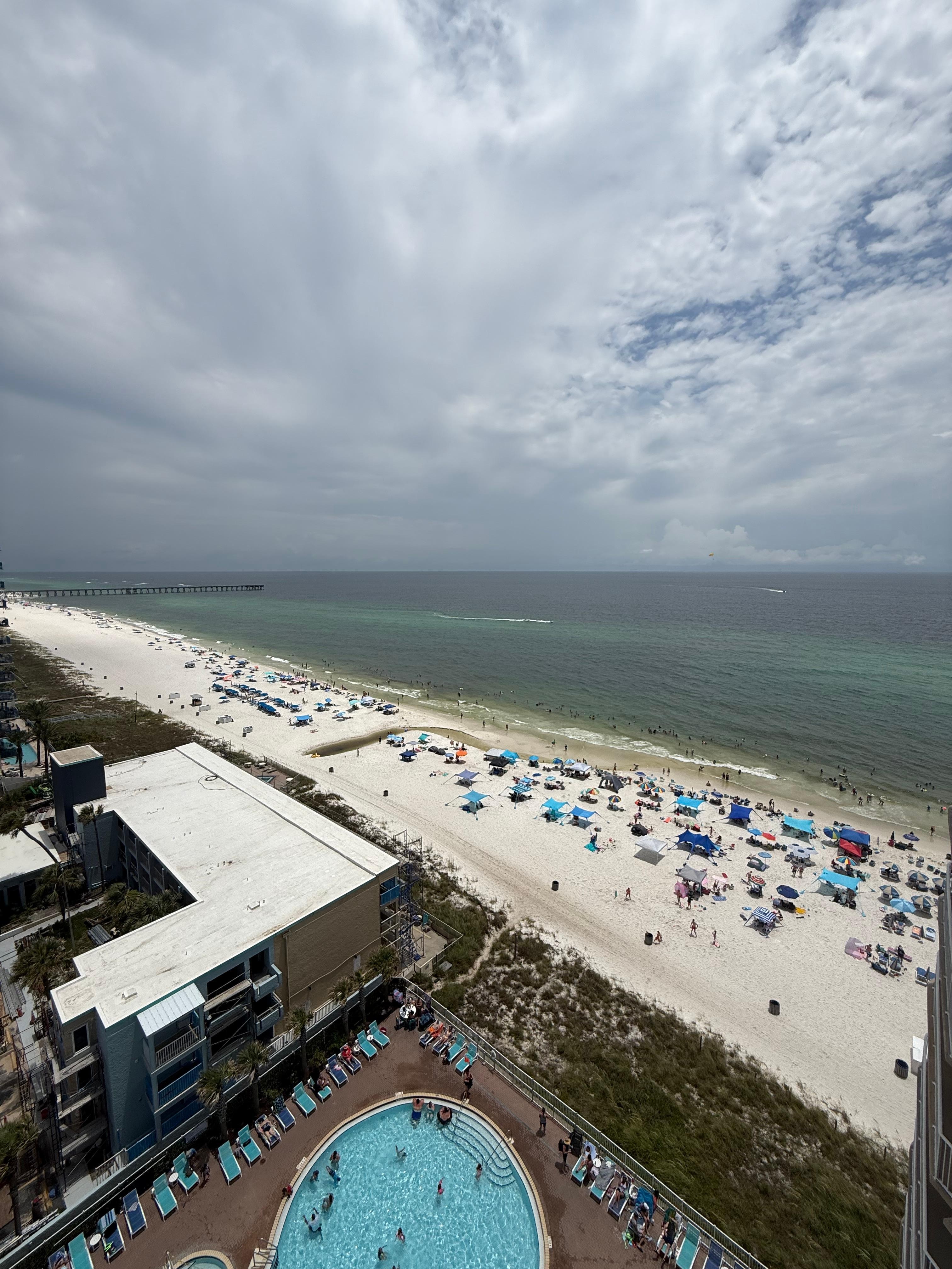 Spectacular Views from Floor to Ceiling Windows of Gulf, Pier, Pier Park and Lake.. Remodeled January 2022 and still beautifully decorated, beach inspired, bright and sunny 1 bedroom/ 1 bath unit. This unit sleeps 4 adults/persons and 2 children under five years of age with sleeper sofa and bunk beds. (see below)