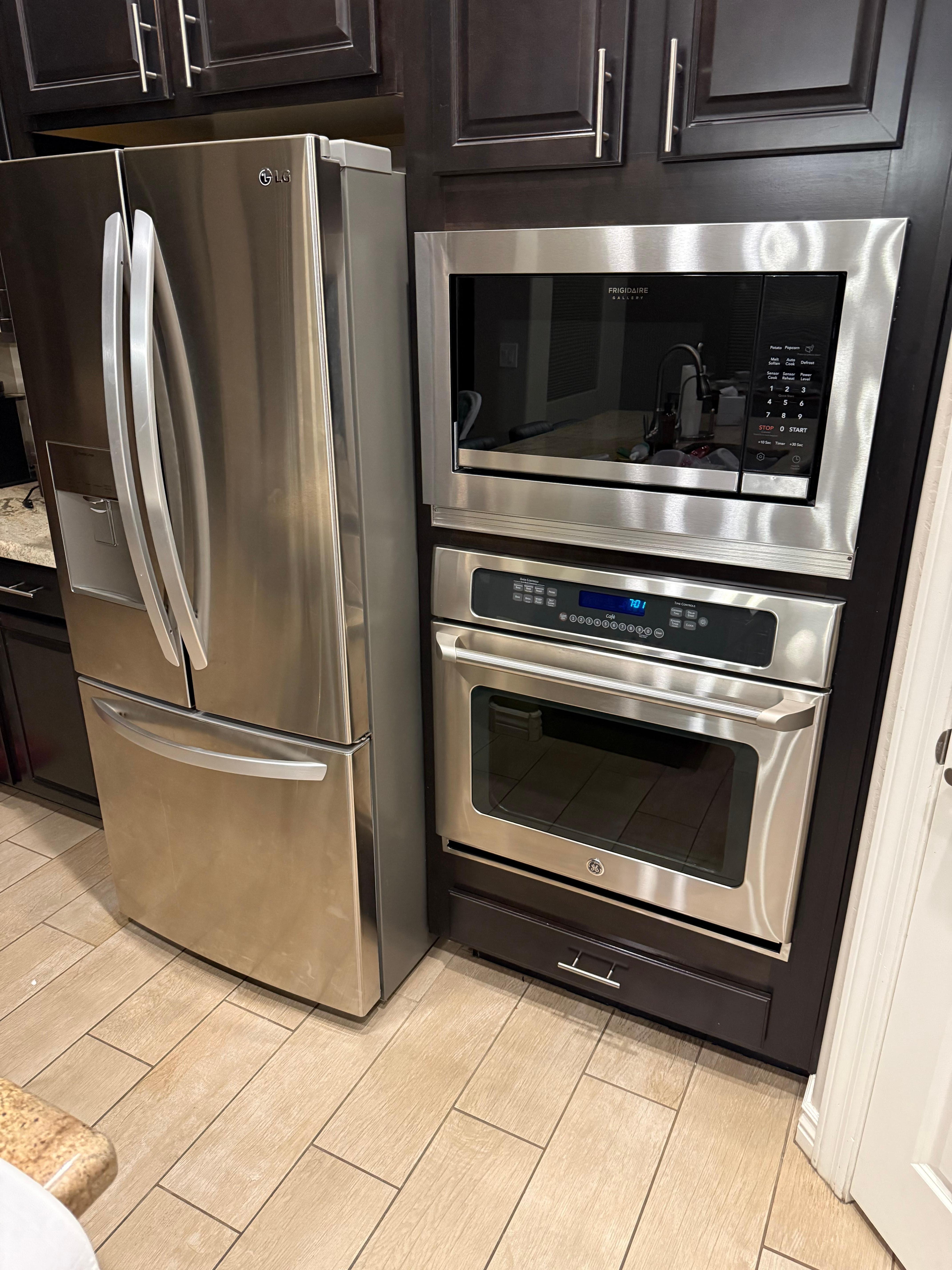 Fridge, microwave, oven, stovetop