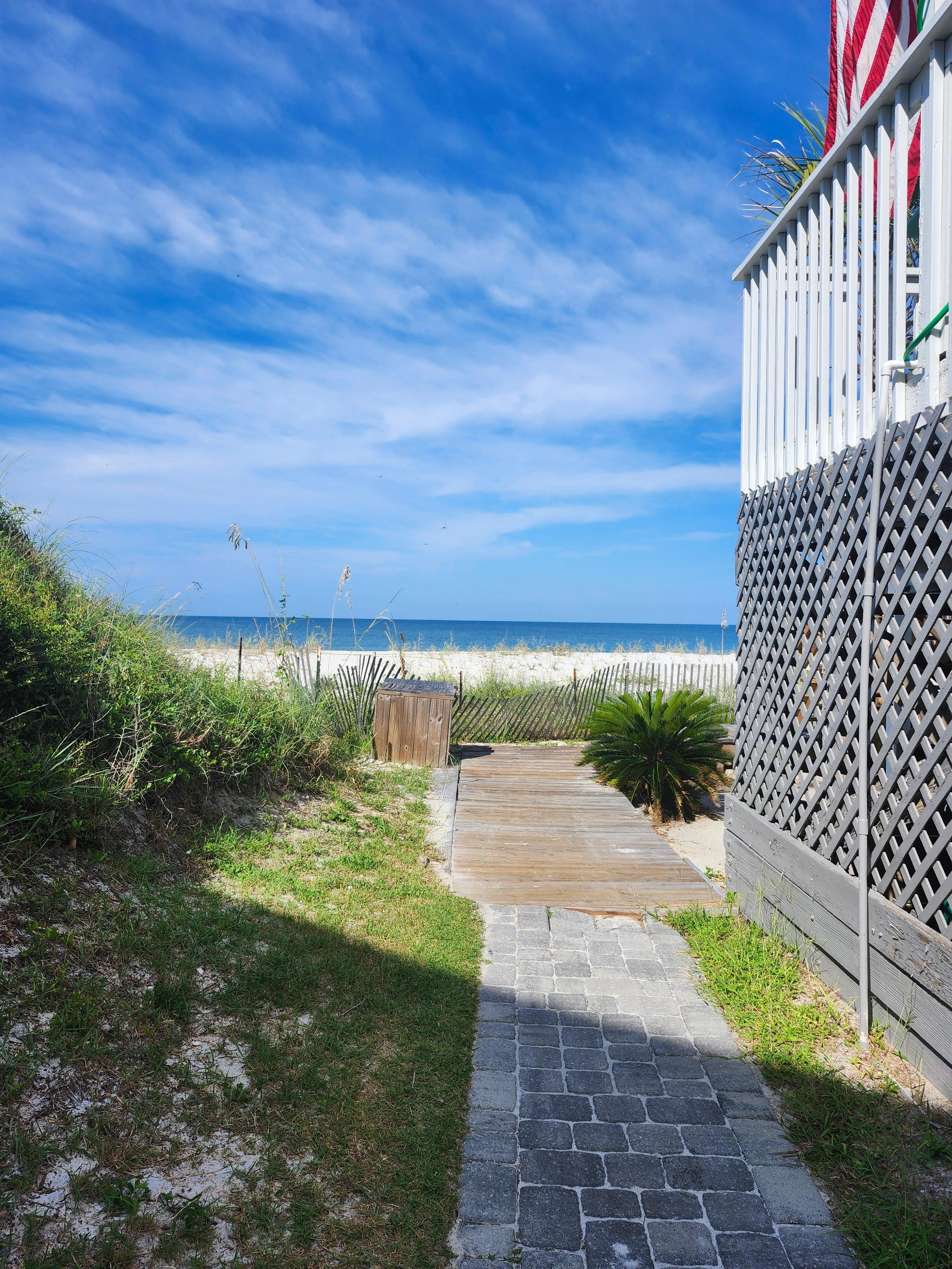 The location of SeaEscape offers beach access to the gulf front pool and the beach, with ocean views from the master bedroom balcony. Outdoor enclosed shower and fish cleaning station with sink located underneath the house. Just around the corner are the tennis courts and 2 pools. Also, there is a playground for the kids to enjoy. Kids will love to practice their casting in one of the three stocked fishing ponds as well as feeding the turtles!