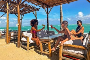 Just relax, enjoy a Cocktail with your friends while watching the amazing Sunsets in our Beach Restaurant. We will be happy to Welcome you.