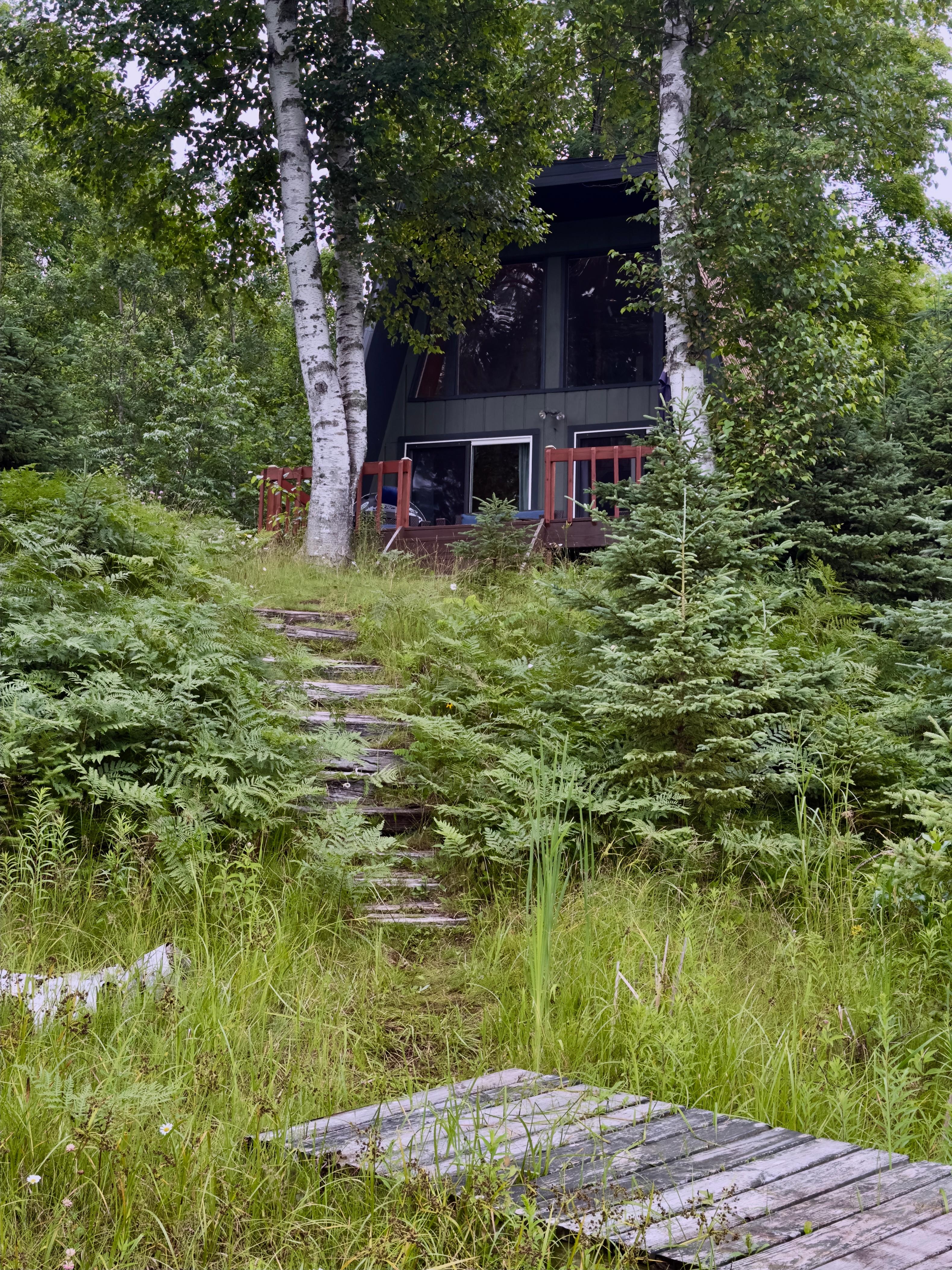 Cozy cottage perfect for a couples getaway. Down a curvy dirt road, deep in forest of the birch and maple trees, this cute little gem of a cottage sits above beautiful and tranquil Sundog Lake. This cottage faces west and has the best view of the most amazing sunsets. There's a deck on the front to enjoy the lake view or enjoy the wooded view from the back deck. You'll see and hear wildlife galore here; deer, moose, loons, and the eagles frequently perch around this cottage. Sundog Lake is a private (no public access) spring fed lake. It's a quiet lake with the occasional fishing boat or pontoon puttering by. You have your own private dock to fish from or put out a chair and read a book. The shoreline is sand with some rocks and clams. Great swimming, relaxing on a tube but there is lake vegetation beyond the dock. Inside you'll find an efficient retreat. What she lacks in size, she makes up for in pure charm. Main level has a bedroom with a queen bed, full bathroom (stand up shower), full kitchen equipped with everything you will need, and living area with a pellet stove. Upstairs is a loft open to the front of the home. The loft has games, books and a rocker to enjoy the view. Also in the loft are two small, but functional bedrooms. These bedrooms are open to the loft area. There is lots to explore in the Republic area like kayaking, and hiking and you are 45 min from Iron Mountain, 60 minutes from Marquette, 60 minutes from Canyon Falls, 90 minutes from Bond Falls (plus, lots to see along the way). We hope you'll come stay with us and enjoy the quiet, peacefulness of the stunning central U.P.