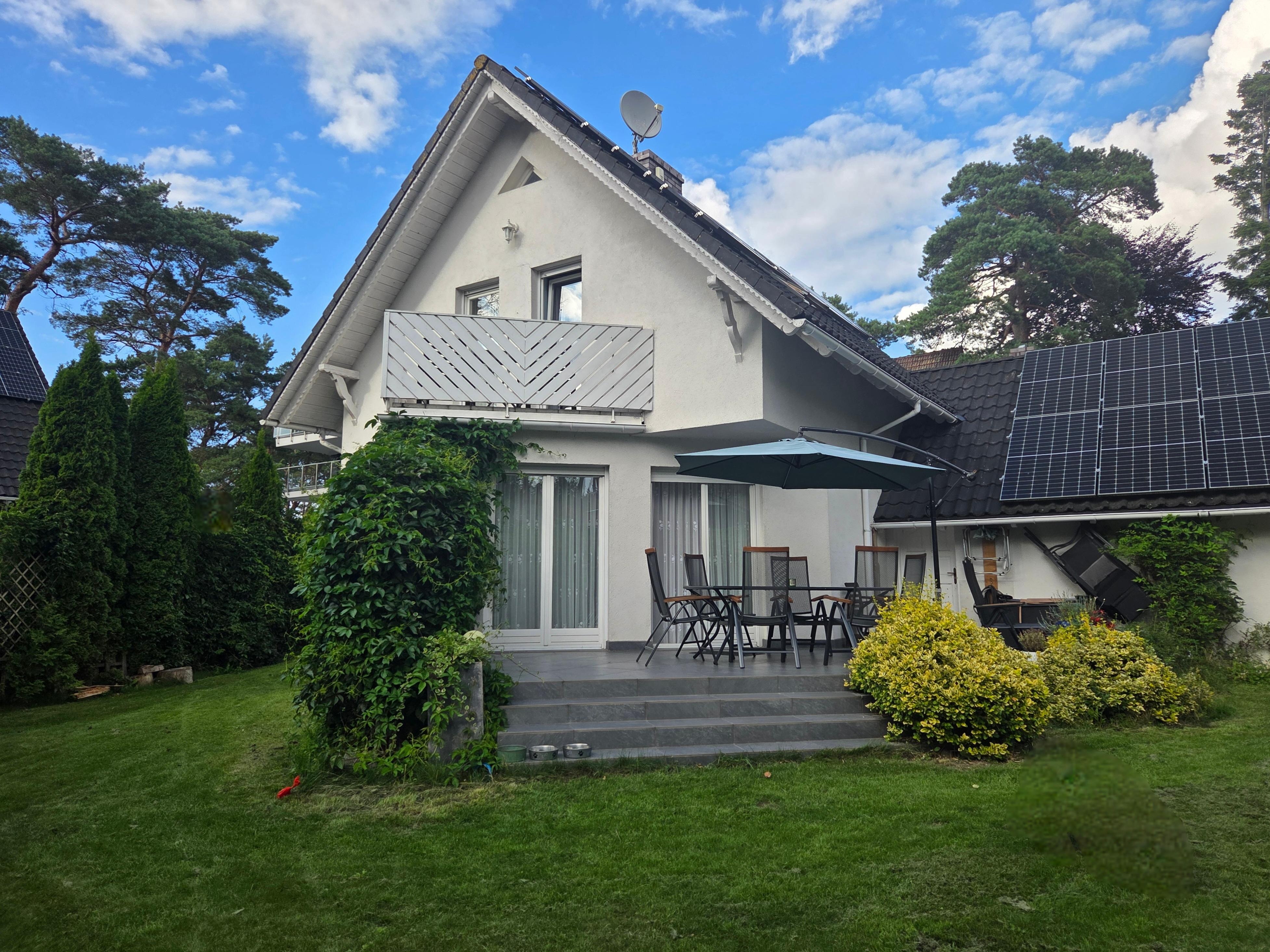 - A sonniege terrace with garden furniture and barbecue.