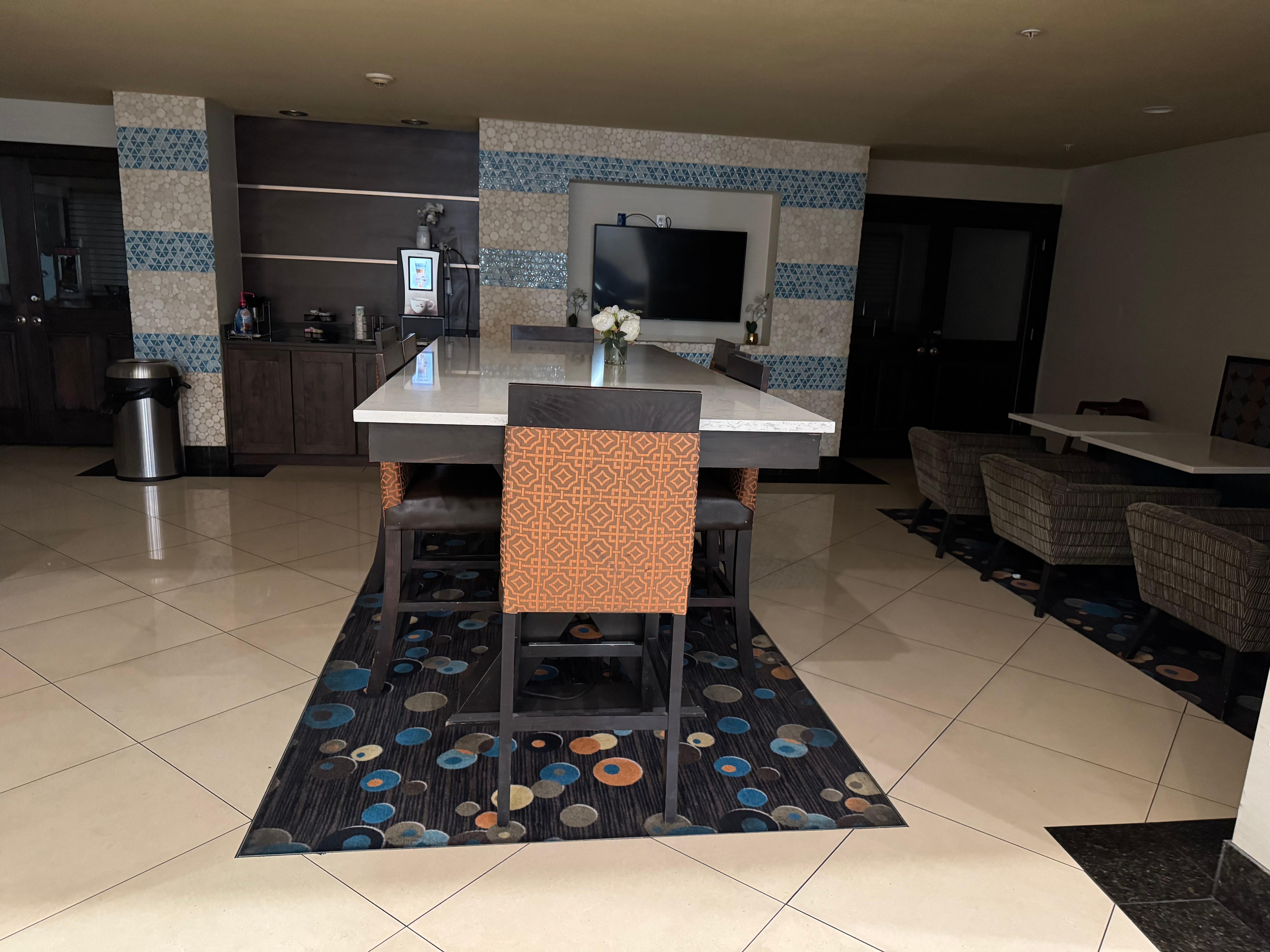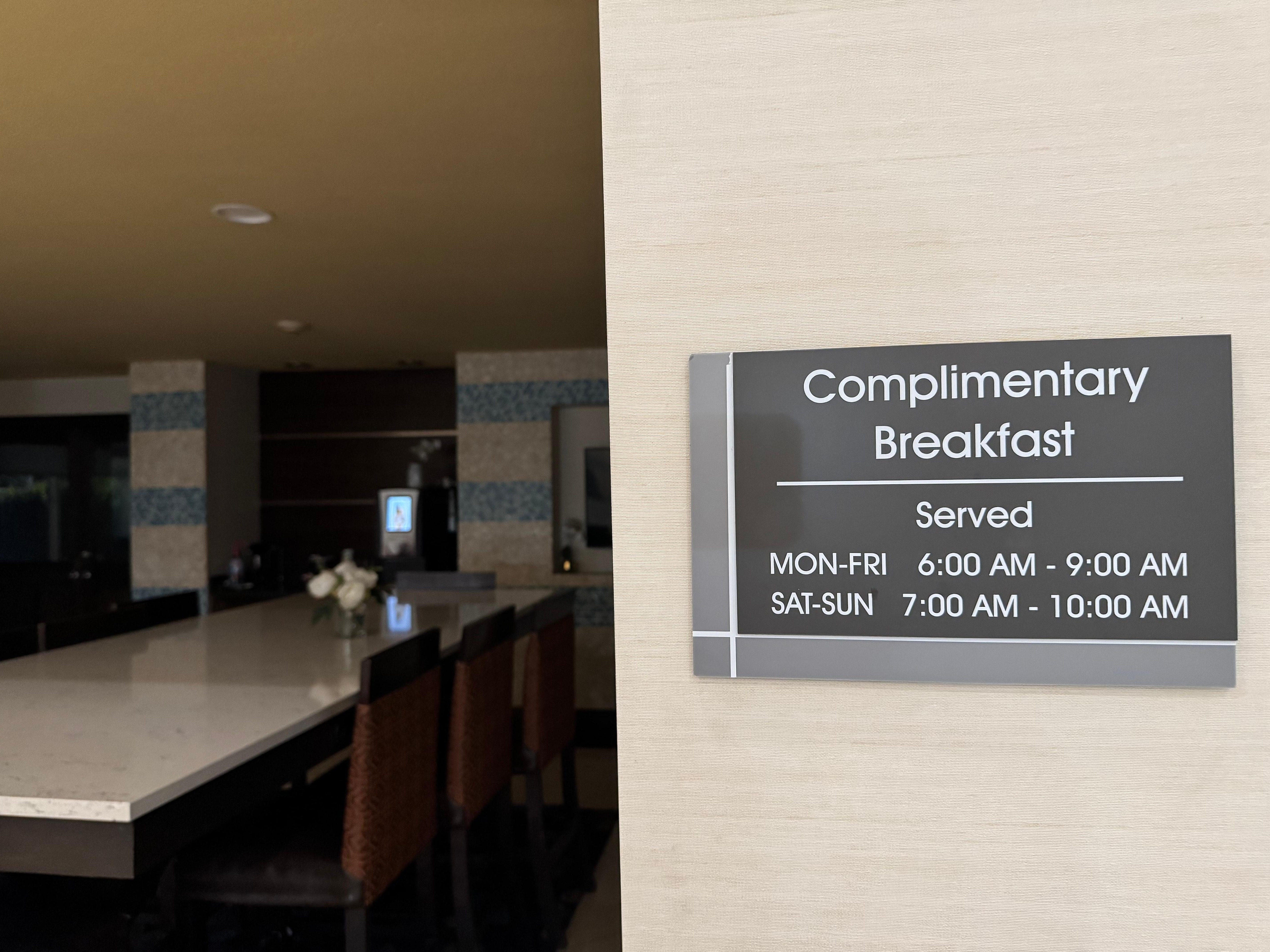 I felt unsafe twice when my entry card did not let me in from the parking lot. The small hotel did not have a address or sign so I did not know if I was in the right place, tub was dingy and old, sheet was stained, elevator floor was very dirty and sticky, people staying the night were shady. They mentioned breakfast would be at 6, but weekends it starts at 7 so I went down too early to a dark room with no desk attendant. I think the location was convenient and the man who checked me in was very kind and so was the young lady who stocked the breakfast items. She was sweet too. Breakfast was coffee, tea, juices choices, waffles, cereal, muffin, toast, applesauce and a container of peaches.