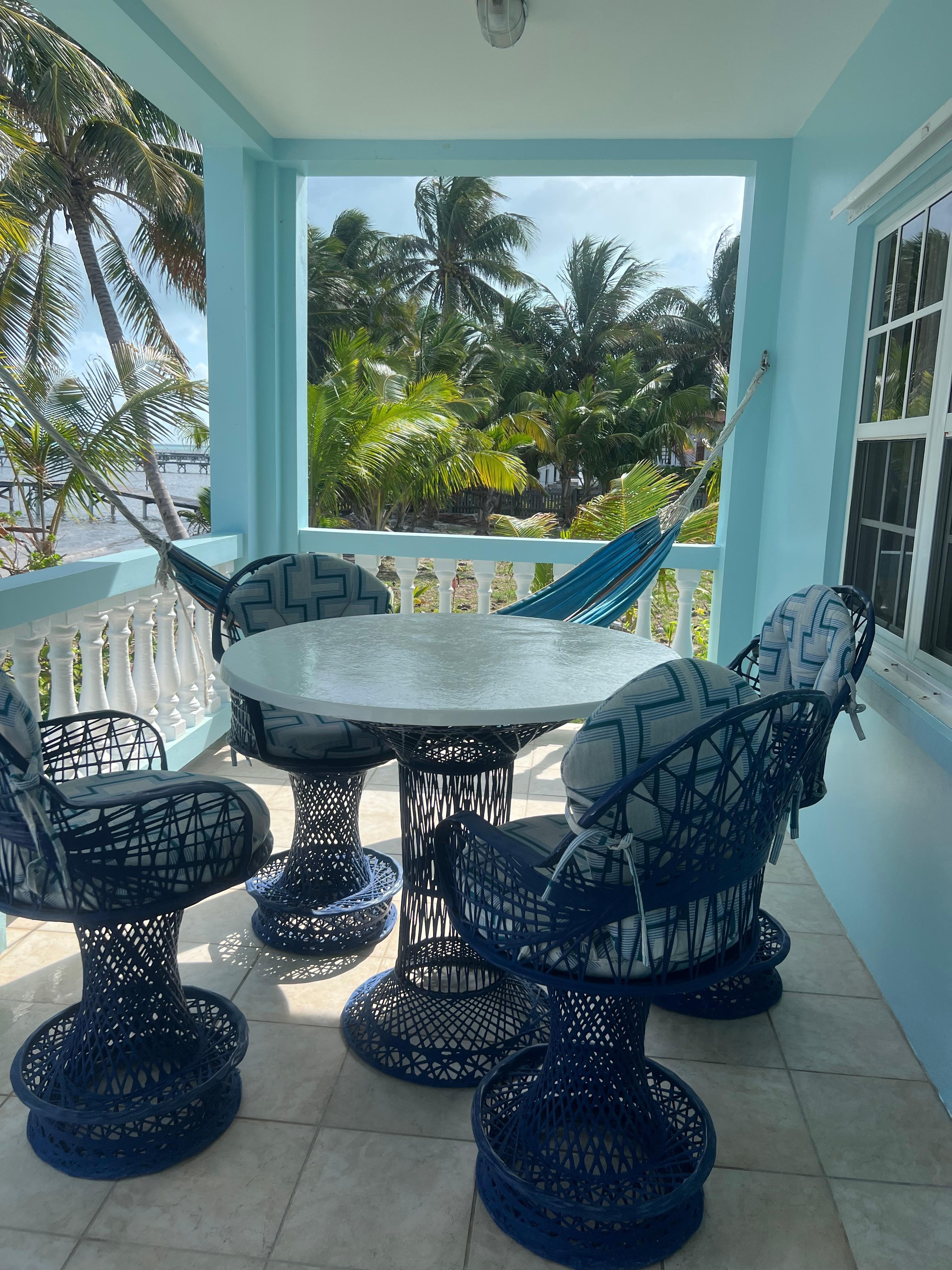 This 1800 square foot condo is a great ground floor, beachfront, 3 bedroom/2 bath condo all on one level. Primary bedroom has a king bed, second bedroom has a queen bed, and the third bedroom has 2 twins (that can be made into a king upon request). Living room has a futon and a sleeper sofa. There is a nice long veranda off the living room overlooking the beach, the pier, and the Caribbean Sea. This unit accommodates up to 8 guests.