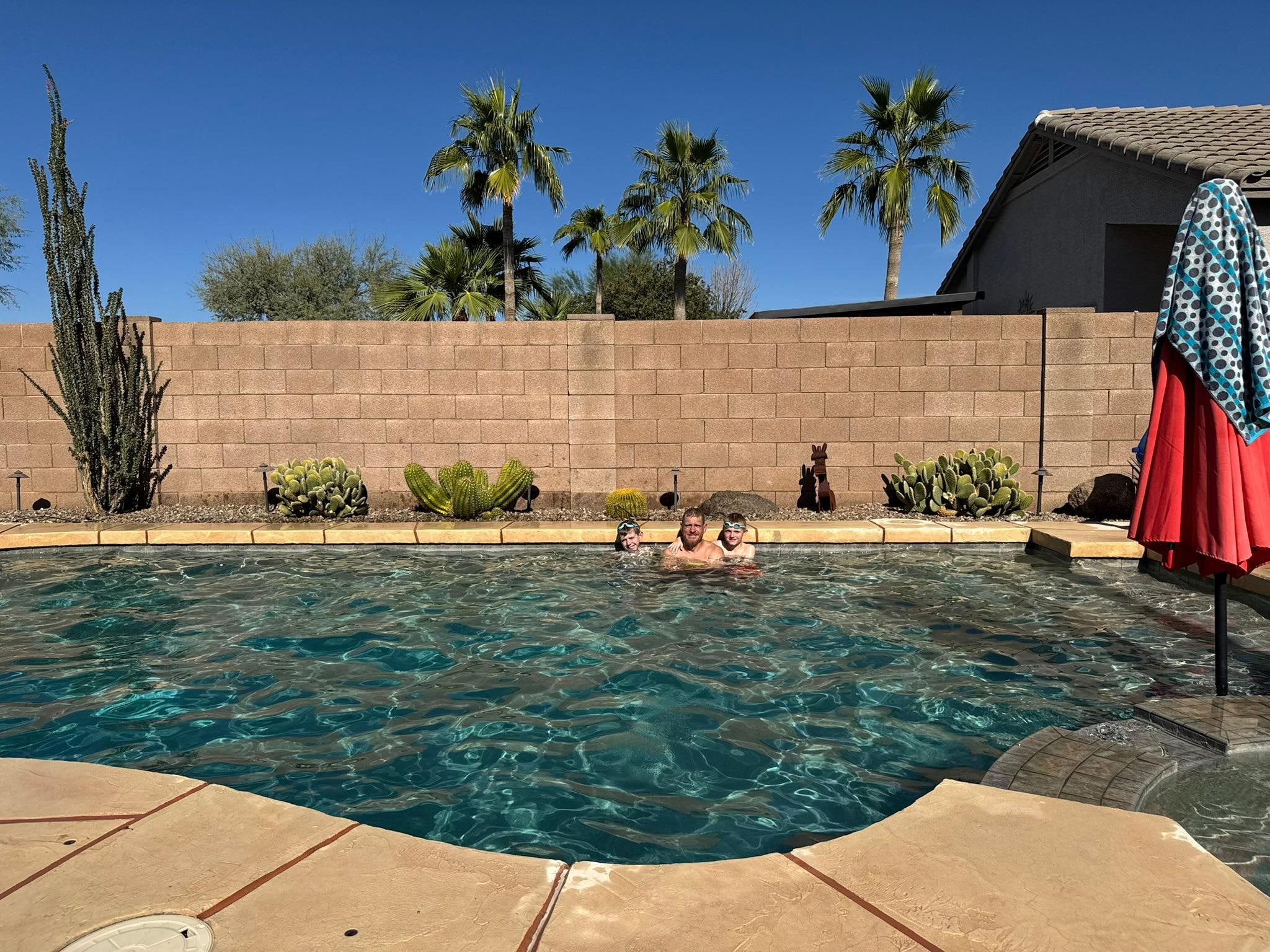 We enjoyed the home, pool, and quiet neighborhood with easy access to food, shopping. If weather wasn’t a scorcher, we could have walked our grandson to his school. Instructions were easy for alarm, pool, spa, host responded quickly. We would love to return to this house in the cooler months.