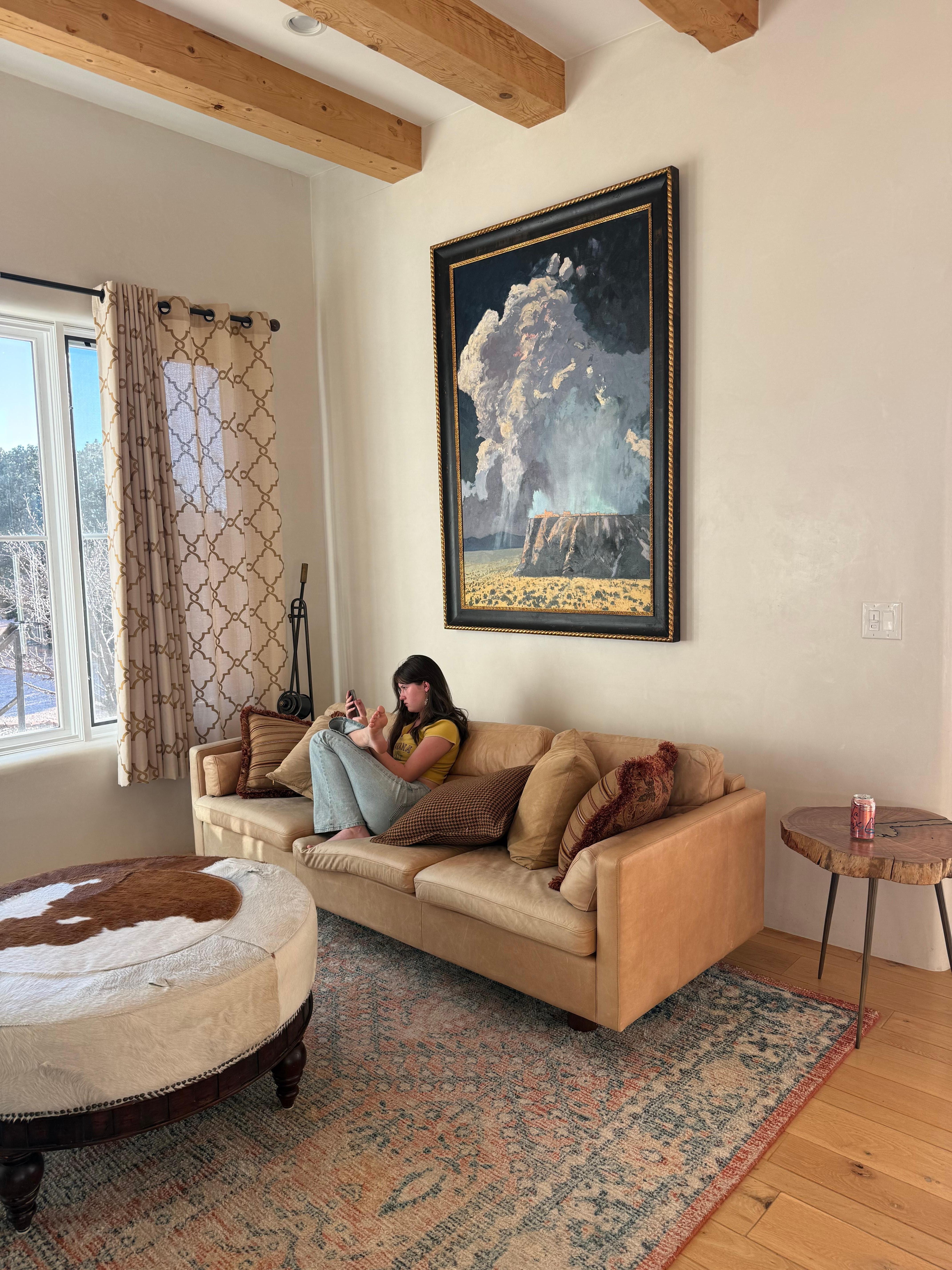 This is the perfect hideaway whether you want to work, enjoy times with family and friends or just have a secluded holiday. Please note, the outdoor fireplace under the portico may not be used due to Santa Fe County fire restrictions.