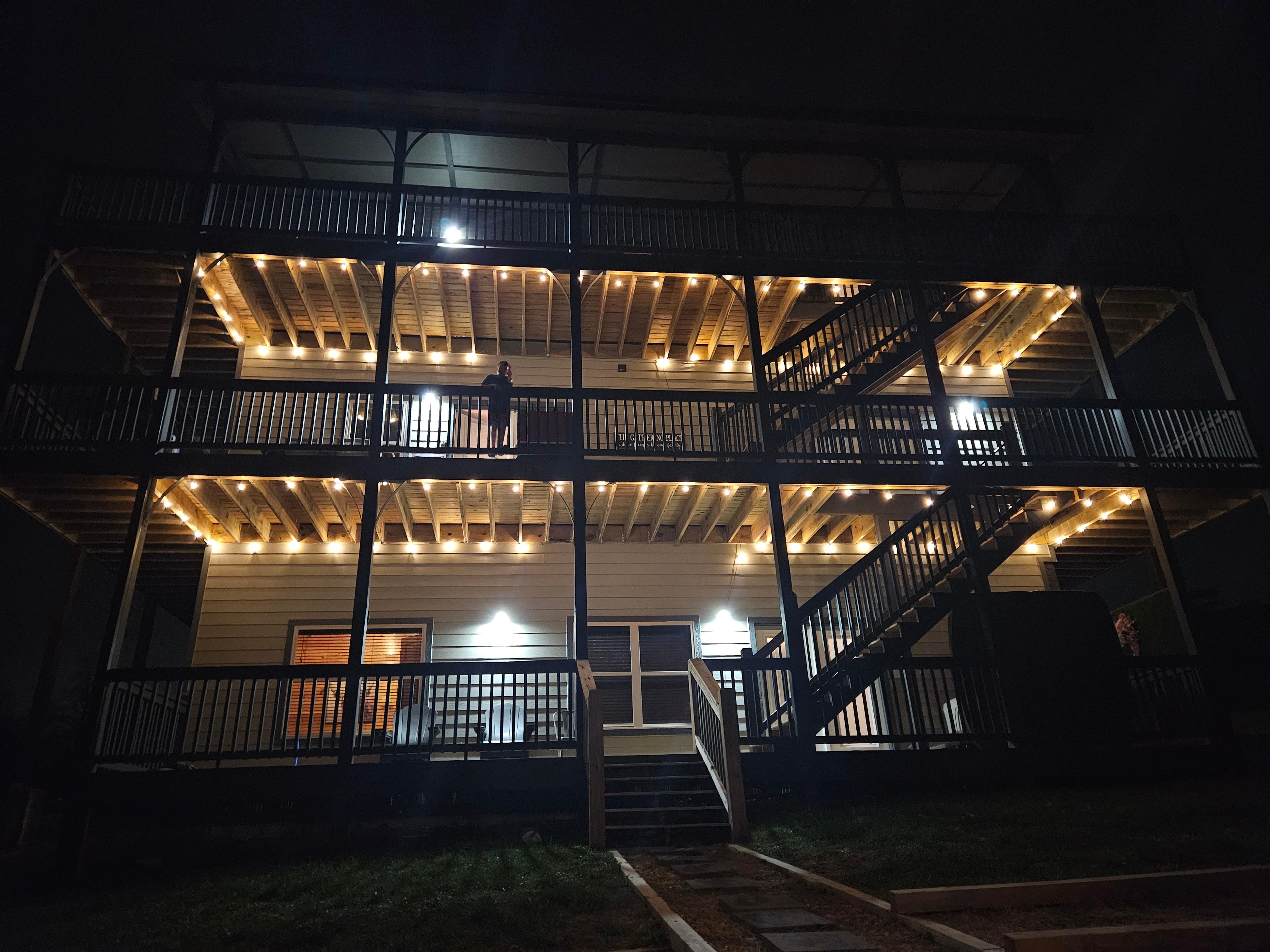 +Hot Tub on outside deck with gas grill, string lights