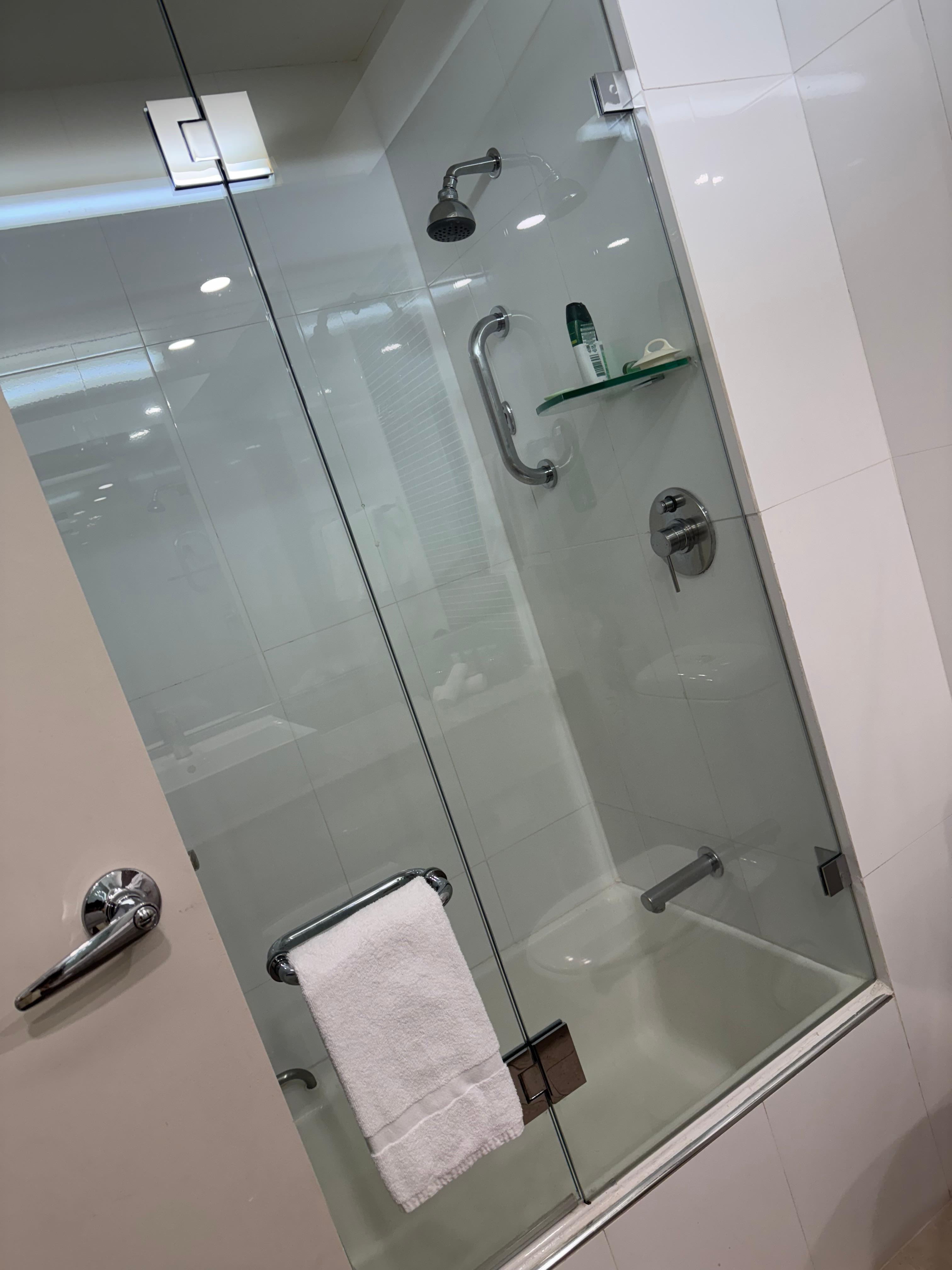 Only negative would be having to climb in and out of bath to have a shower. Any water on the floor made it a bigger hazard to climb out. Sliding glass shower screens would help stop water going on floor but next time I would ask for a walk-in shower if they were available.