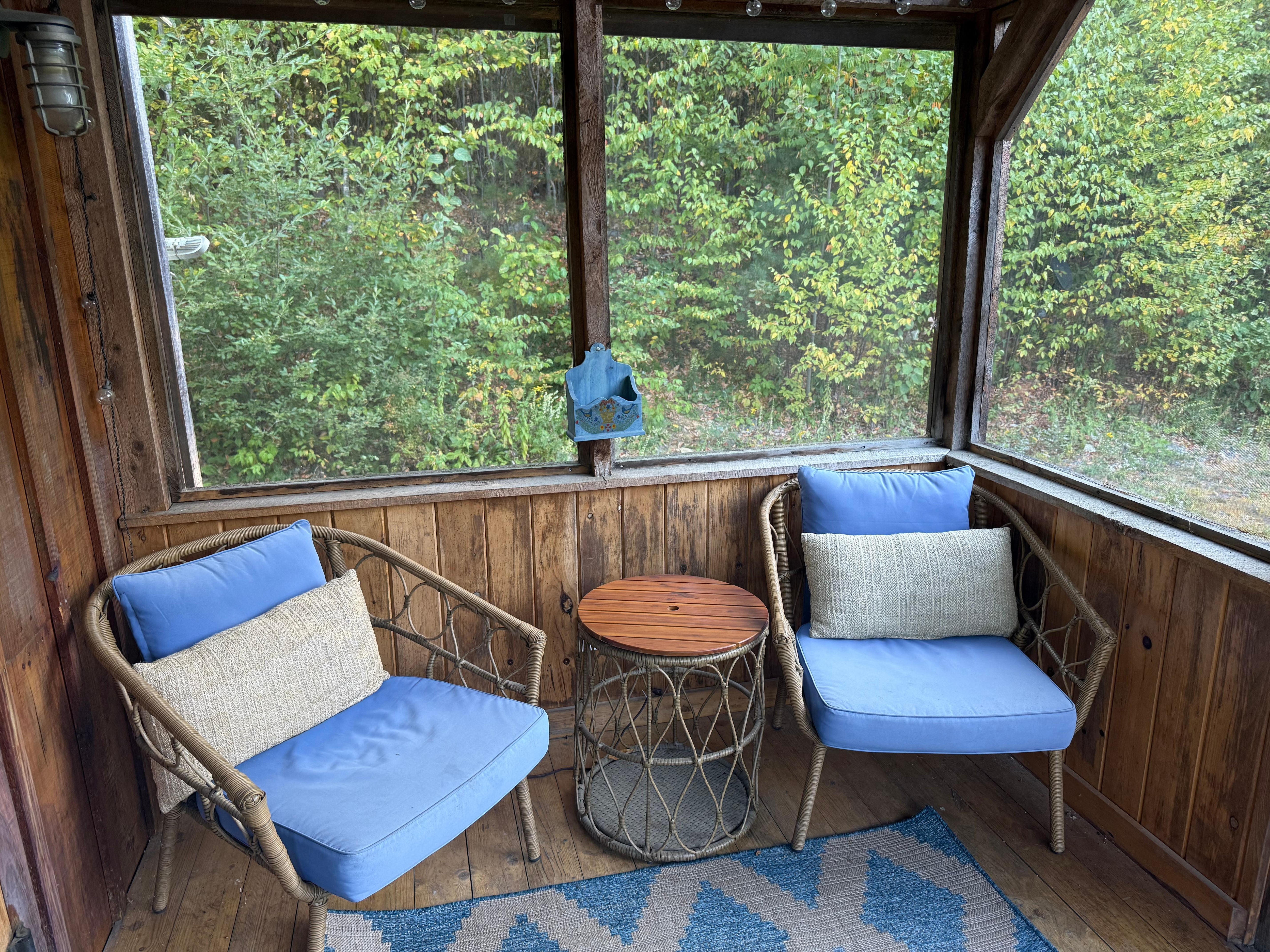 My husband and I wanted a relaxing few days to get away from our hectic lives. This small cabin was perfect, comfortable, and nicely appointed. Reading a book on the screened in porch with a cup of coffee was my favorite part.