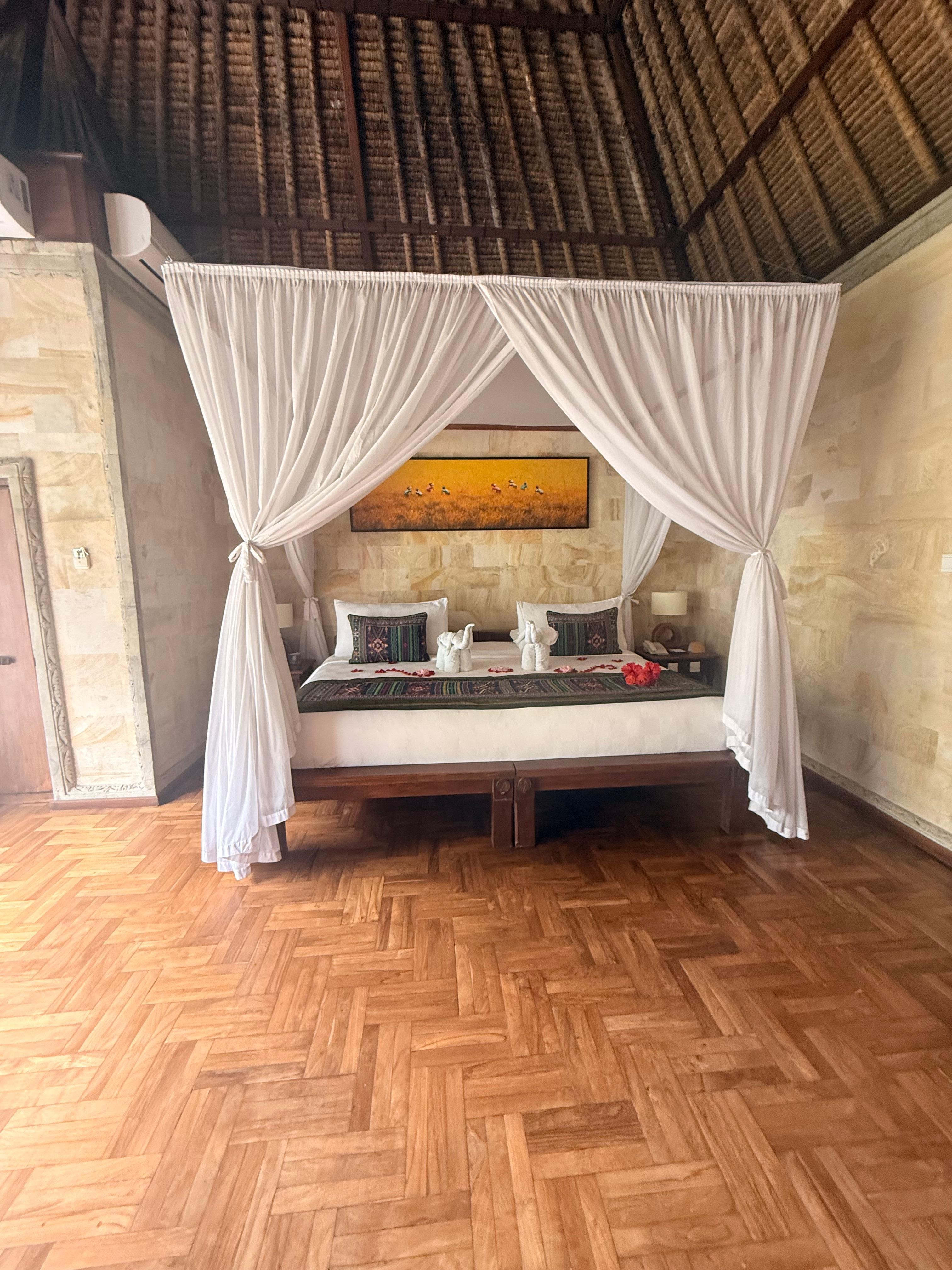 The property truly is incredible. Gorgeous. The staff is friendly, helpful, professional and polite. The privacy and luxury are exceptional. While there are a few issues, the absolute beauty of the rooms and views make up for it. Truly a majestic experience. On to the Issues: Some villas are a long walk. Up many many stars through sometimes confusing winding paths. You will have time to appreciate the beauty as you get lost, backtrack and get turned around. We stayed in two different villas during our stay. The Royal Spa Villa (at the bottom of many steps and twisting paths) and The Royal Pool Villa (near the entrance and very convenient). The mosquito nets, while pretty much unneeded, and only for aesthetic value, I noted they were not always clean. With the Royal Spa Villa’s being quite dirty. On that note: bugs. You’re in the jungle. There will be bugs. Thankfully there are no mosquitos, but in the room I found a few moths, one or two ants at any given moment, and one cockroach (dead thankfully). I’m sure they treat for it, and it did not impact our stay, but yea… you’re in the jungle. The restaurants. The restaurants in the hotel that are just for guests are fantastic. Beautiful views and delicious food. The restaurant that is open to everyone has very mediocre if not bad food, but the views there are absolutely breathtaking, with massive statues overlooking a vista that people line up at for social media shots. Overall an amazing hotel, with a few caveats.