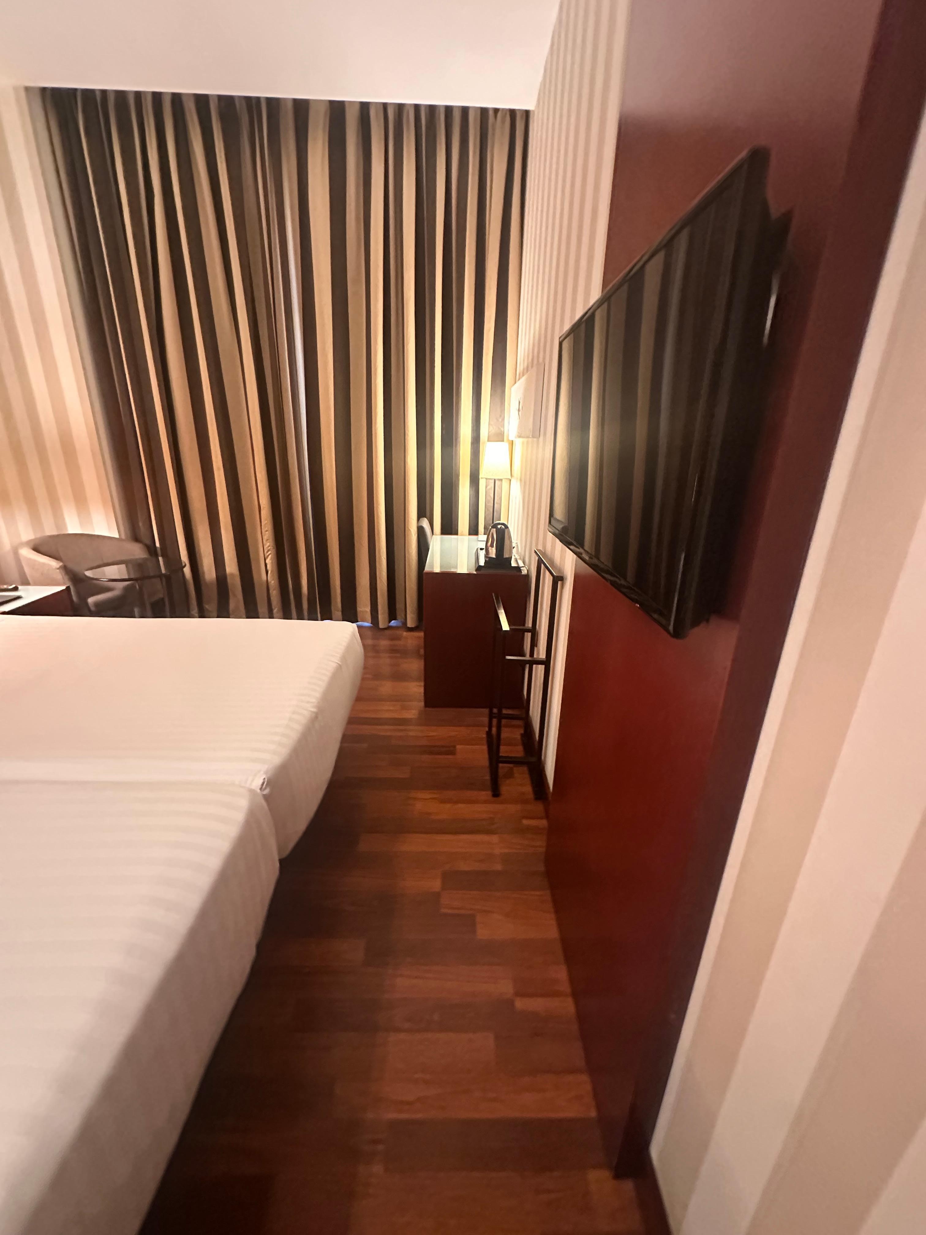 Great experience here. Staff were very helpful. Loved the sight seeing and food recommendations that were provided by the male staff member upon check in. He was lovely and always obliging. The hotel also has a gym and sauna that are available. It was great to have that option after the long days of travel. Would highly recommend staying here as it is less than a 2min walk from Estacion del Nord and super convenient if you are travelling by train. The hotel is also a short walk to most attractions in the city!