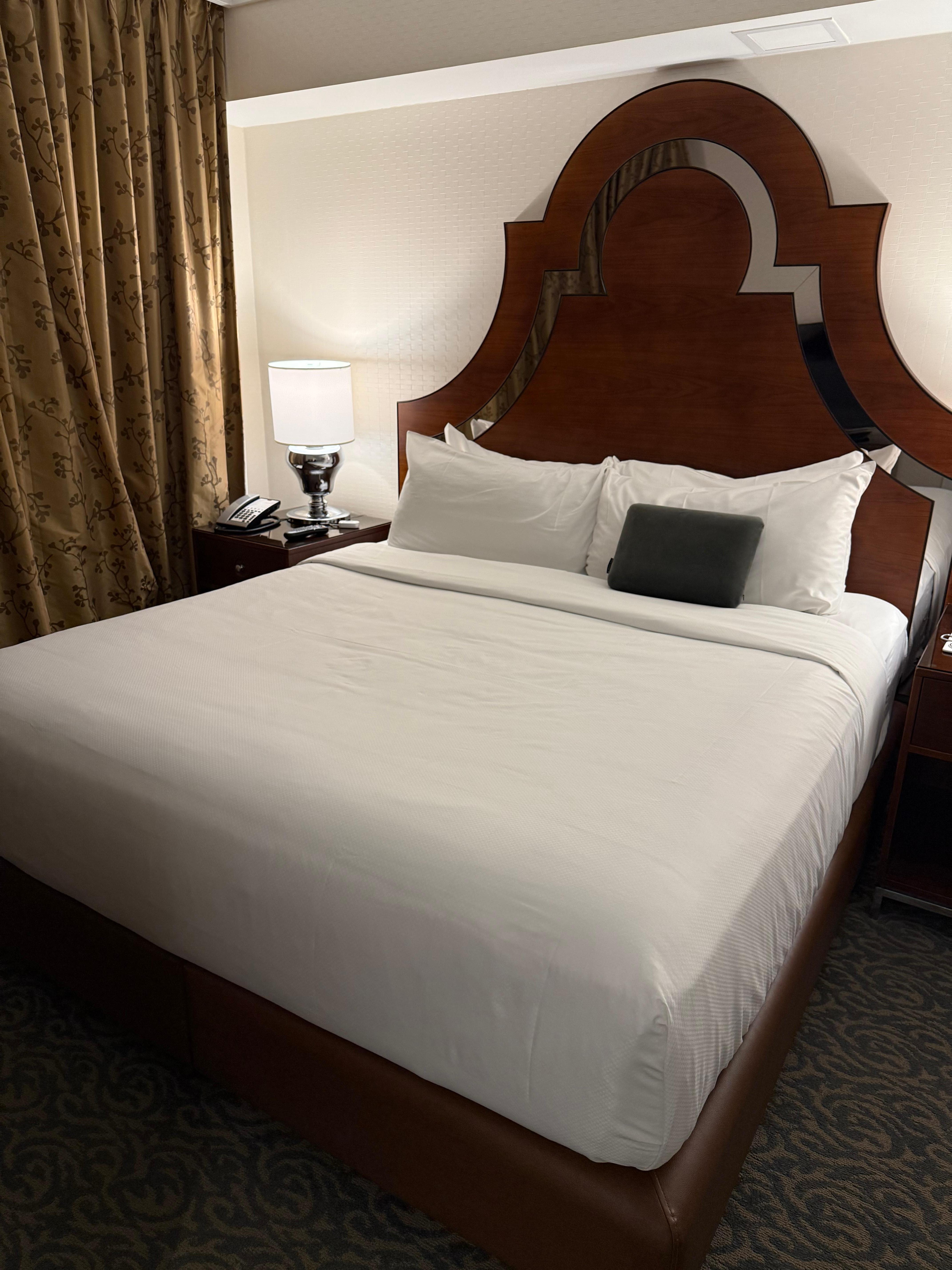 Pressed bed linens, non-squeaky spring mattress with great support and cushioned pillow top. Excellent water pressure from all faucets. Low height toilet. No assist bars for shower or tub. Bath towels are in need of an upgrade, thin and scratchy. No microwave but a bar sink, coffee pod machine and mini fridge were handy. Light blocking drapes and privacy sheers made the expansive windows enjoyable. Building seemed to be fairly well sound dampened from street noise. Busy corner but nighttime was quiet. Access pool and spa by walking through the gym to a door that leads outside. Walk through the outside dining area and past the large windows to dining room. Heated salt water lap pool was clean. Good, wide, double bar with steps. Towels provided. A few loungers and one umbrella. Towels provided. Beautiful landscaping. Jacuzzi was perfect temp and spacious but extreme chlorine fumes from steam so unable to use. No outside pool bathroom or shower. All facilities were in the hotel which required you to partially dry off enough to trek back through the dining area and gym. A bit inconvenient but the inside bathrooms (mens and womens separate) have a sink room with a single toilet closet, privacy glass shower and multi person steam room. Liquid soap dispensers, bench and hooks, towel hamper. We thoroughly enjoyed our 2 night stay after a cruise. We hired an uber $25 for early morning ride to airport. Plenty of good restaurants, coffee and bakeries within 6 min walking distance.
