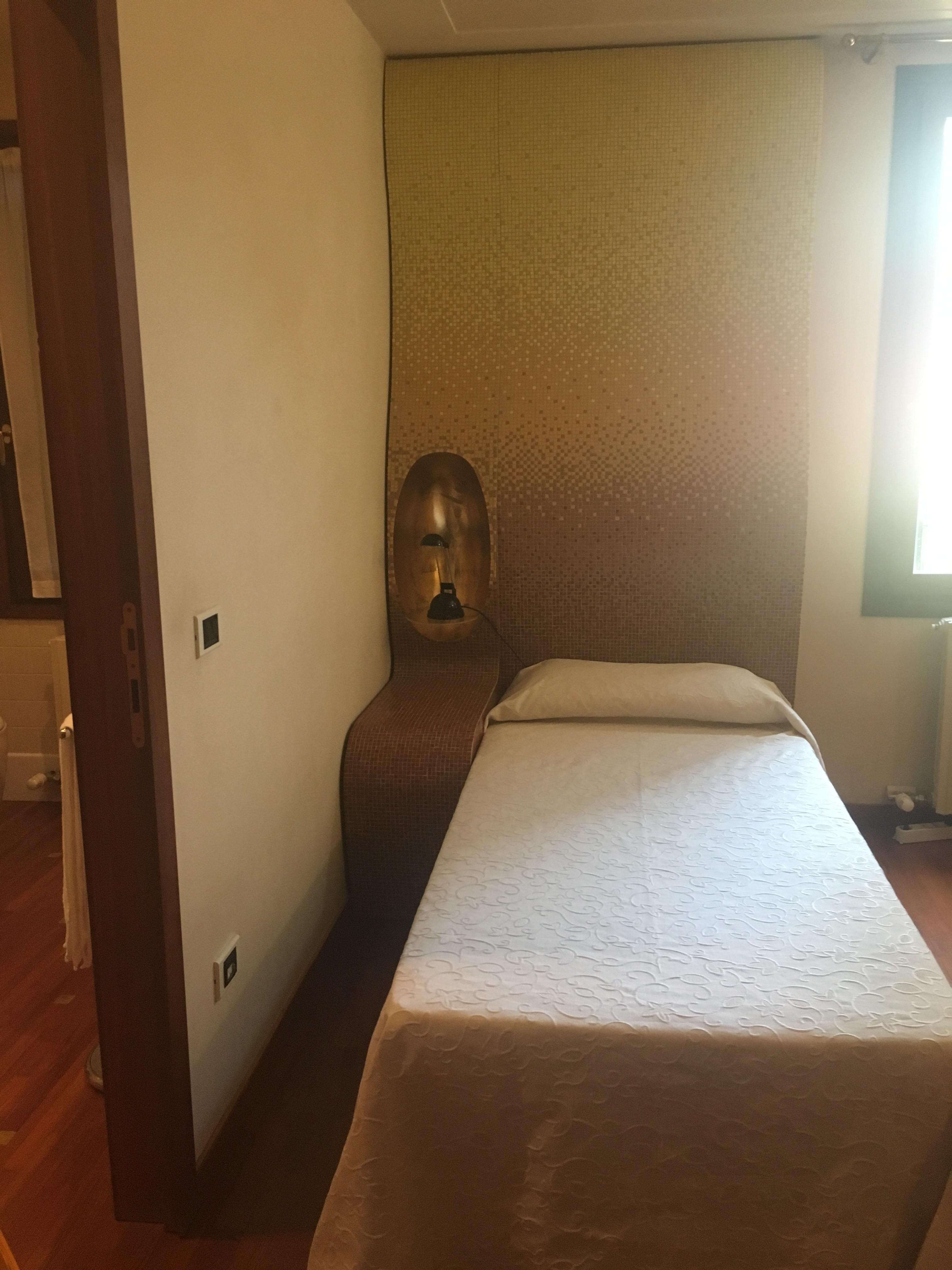 The hotel is massively disappointing! The location is good, however the street outside is incredibly noisy with people crossing the bridge. We were woken up multiple times in the night due to noise. The room itself is incredibly dated, there is alot of black mould in the bathroom, up the wall and around the bath. The grouting needs replacing, an easy cheap diy job that’s unfortunately been ignored and gives the bathroom a grubby feel. The bed is almost unfit for purpose, it’s so squeaky even moving your feet leave the bed making squeaking noises, rolling over in the bed is again noisy. I wish staff would lay on the bed to see how loud this is for guests. We woke each other up just by the noise made my moving in bed. The radiator was constantly on and made the room uncomfortably hot, the air conditioning did not work. We didn’t want to open the windows as there is nothing to stop mosquitos, I was bitten through the night and woken up with 15 bites on my face. We both had a terrible nights sleep, and unfortunately breakfast was another disappointment, our room was next to the kitchen, staff were loud and talking from 7:15 which woke us up, when we went for breakfast, one scone, one bread roll and one egg is far from a “buffet breakfast” there wasn’t even a piece of fruit or cereal. I have to say I feel ripped off, for paying well over €300 for a bread roll offered at breakfast, covered in bites and a terrible nights sleep, I won’t be returning. I feel incredibly let down!